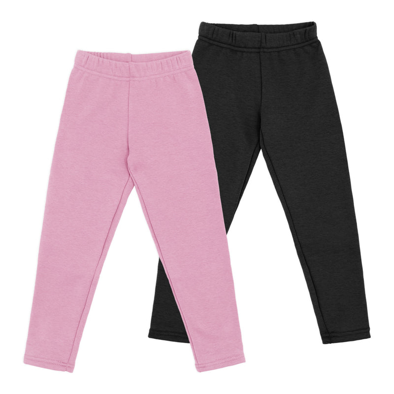 זוג טייצים לילדות ופעוטות בגווני ורוד ושחור עם פרווה מבפנים