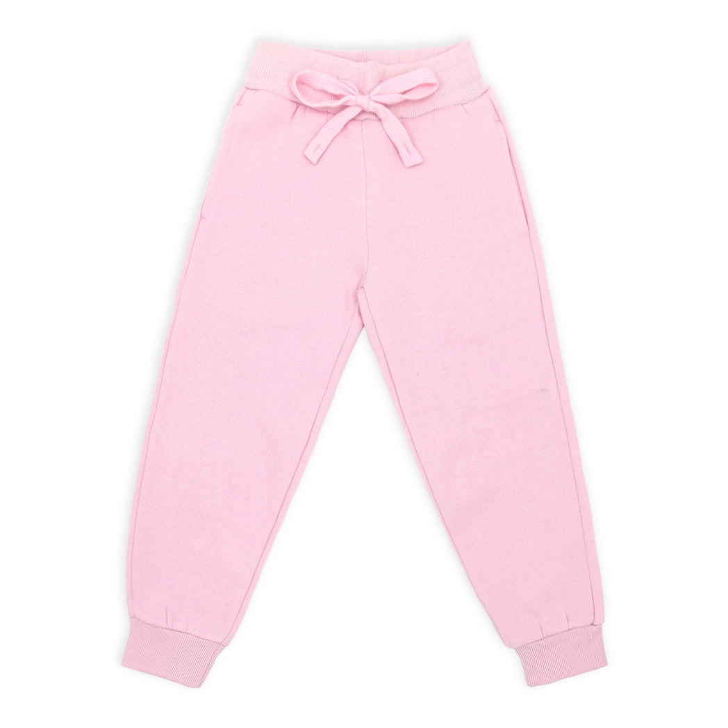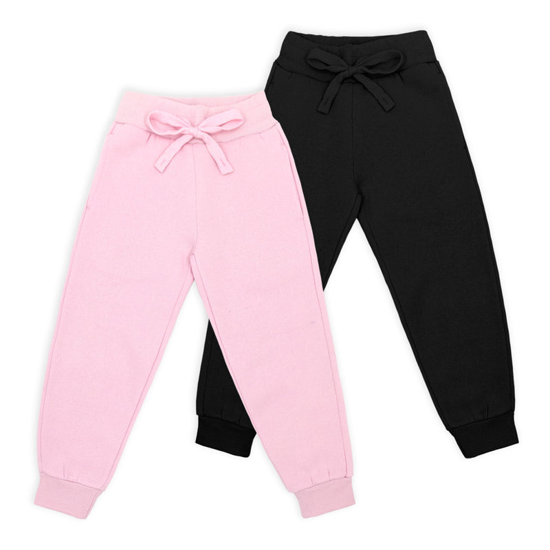 זוג מכנסיים פוטר בייסיק לילדות בגווני ורוד-בייבי ואפור-פלדה