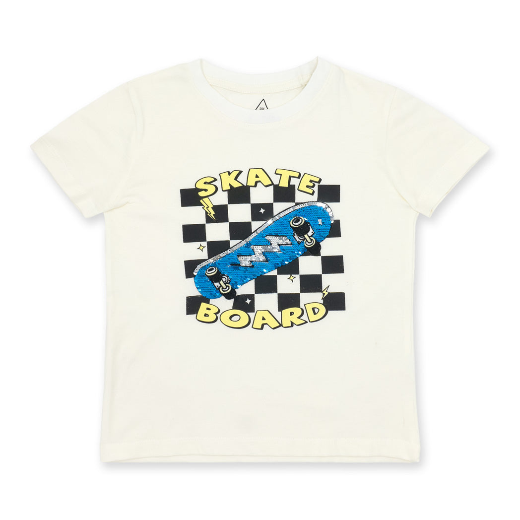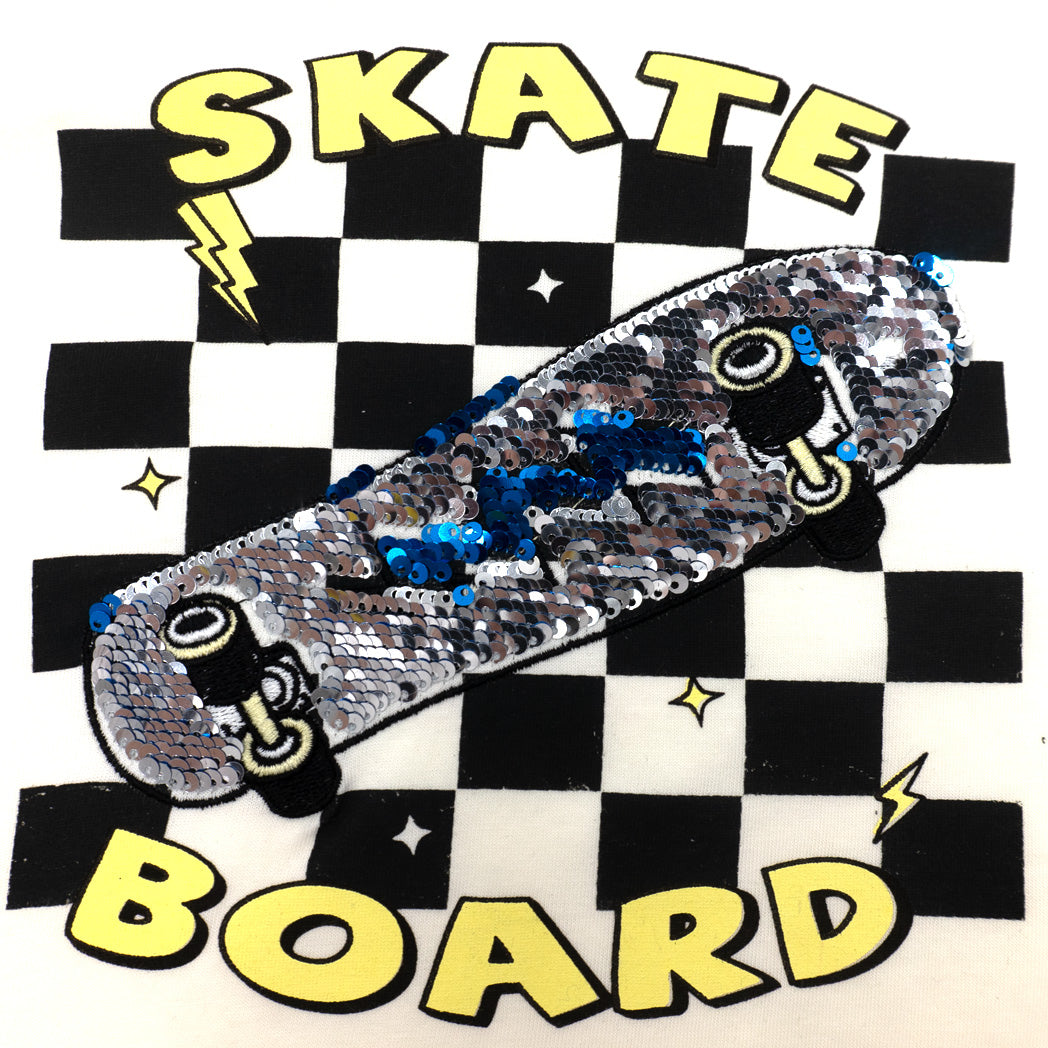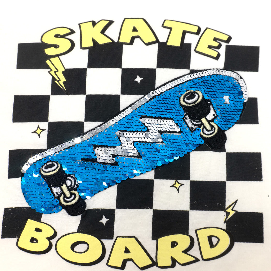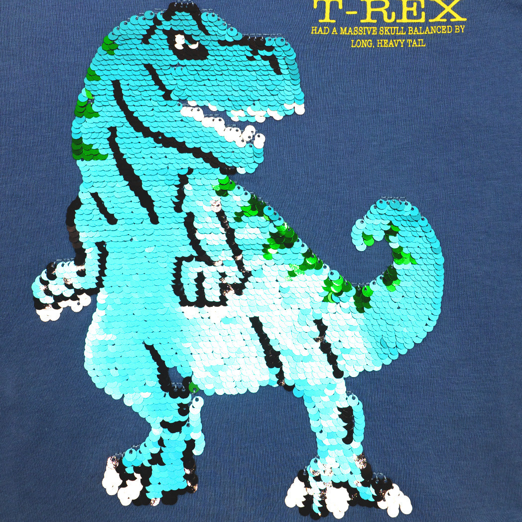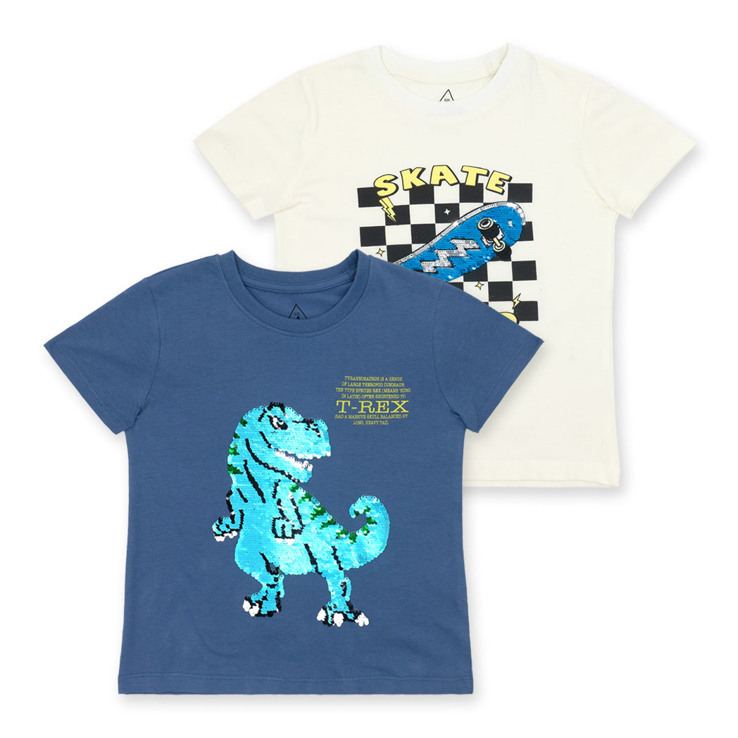 זוג חולצות לייקרה בצבעי כחול וקרם עם אפליקציות מתחלפות גלשן וטי-רקס