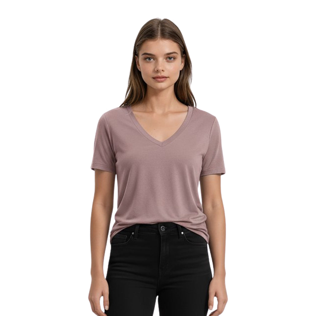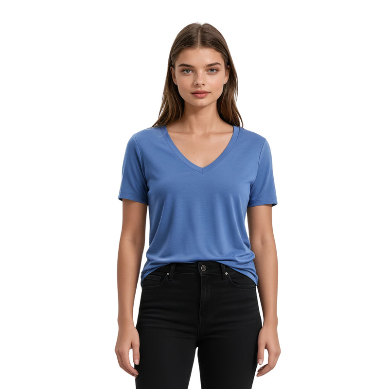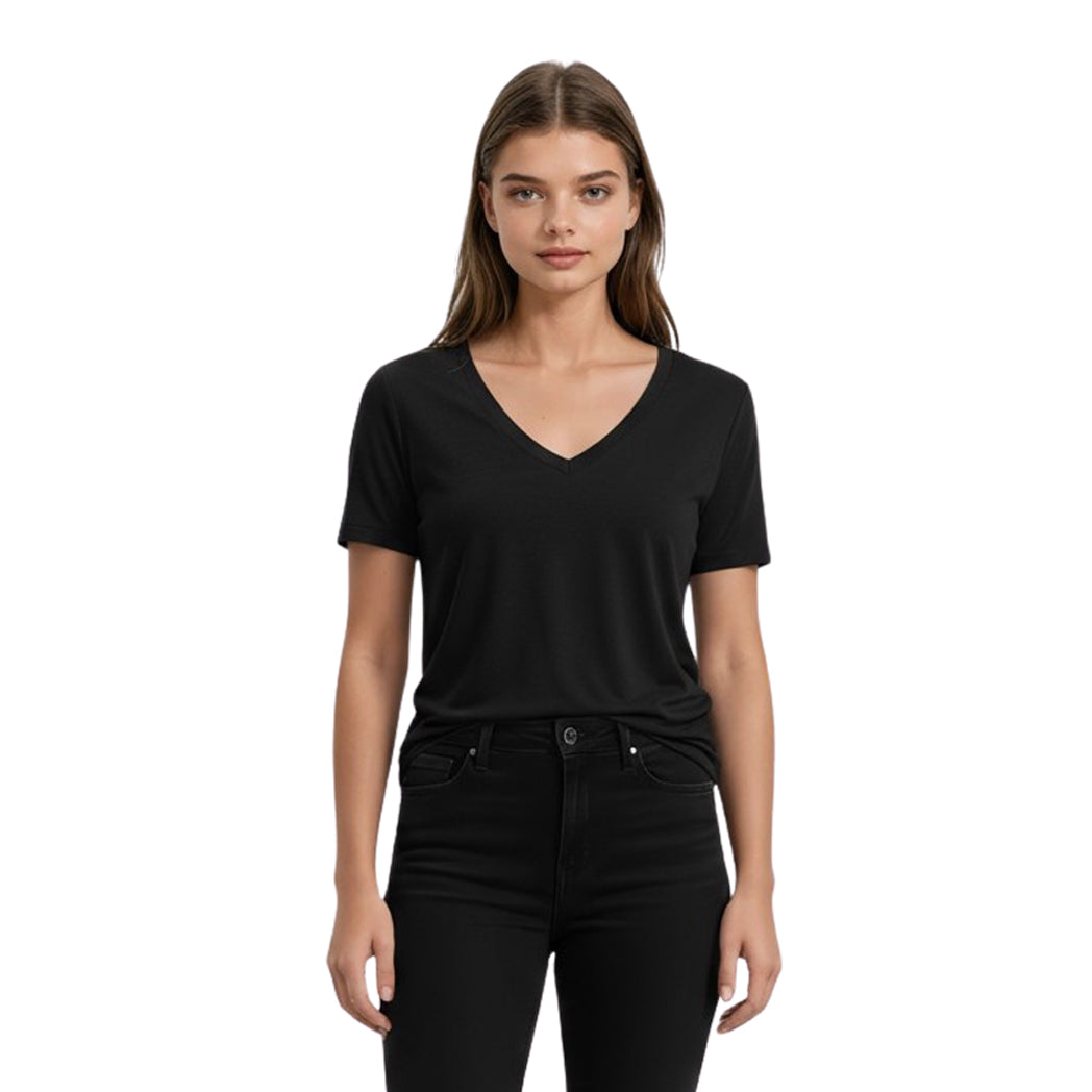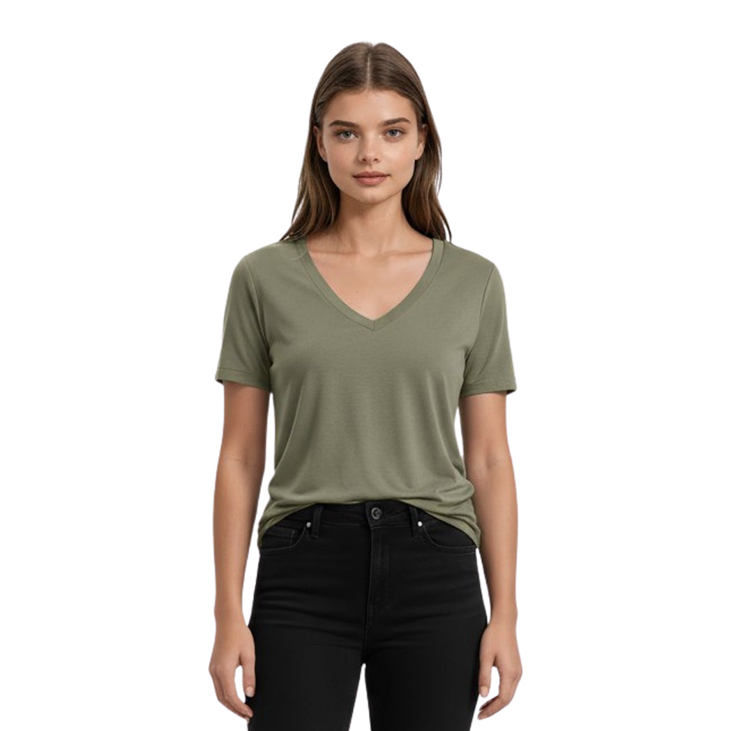 חולצת ויסקוזה חלקה צווארון וי נשים