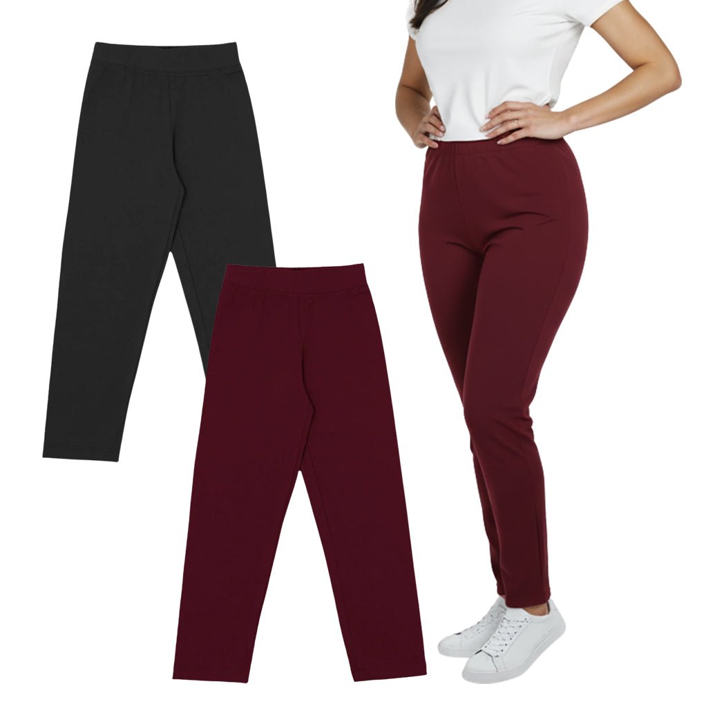 זוג טייצים בגווני בורדו-יין ואפור-פלדה ארוכים בייסיק במידות גדולות