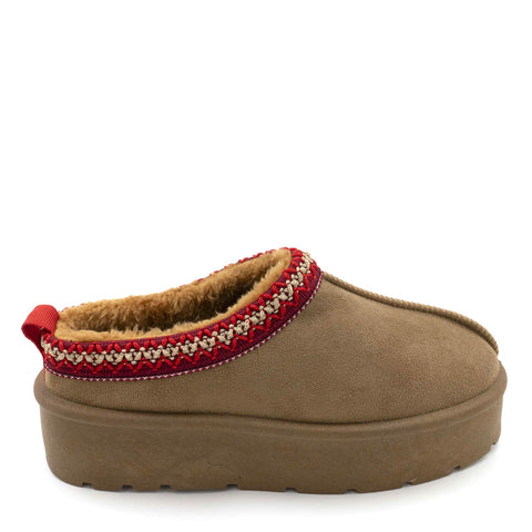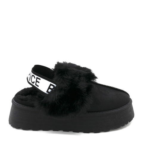 נעלי בית כפכף פתוח עם פלטפורמה, פרווה מפנקת מבפנים ורצועת סגירה בעקב