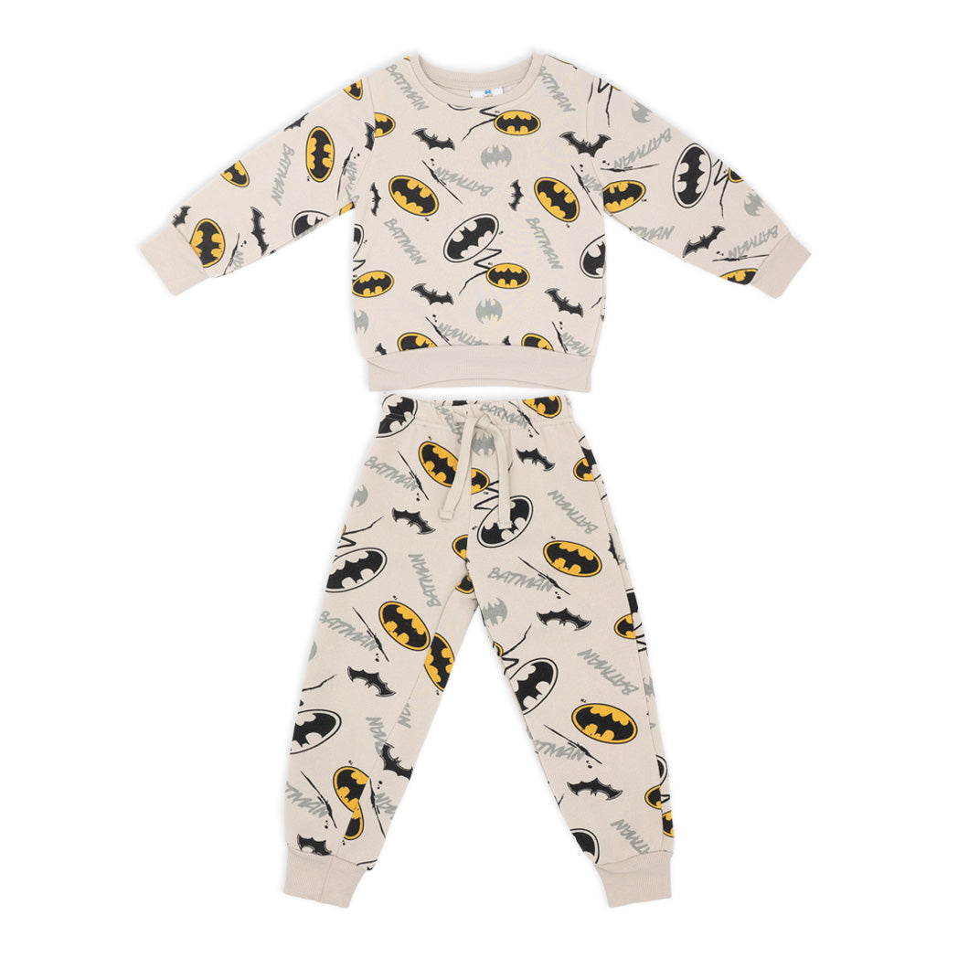 פיג'מת פוטר עבה לבנים בגוון קאמל עם הדפס אולאובר Batman