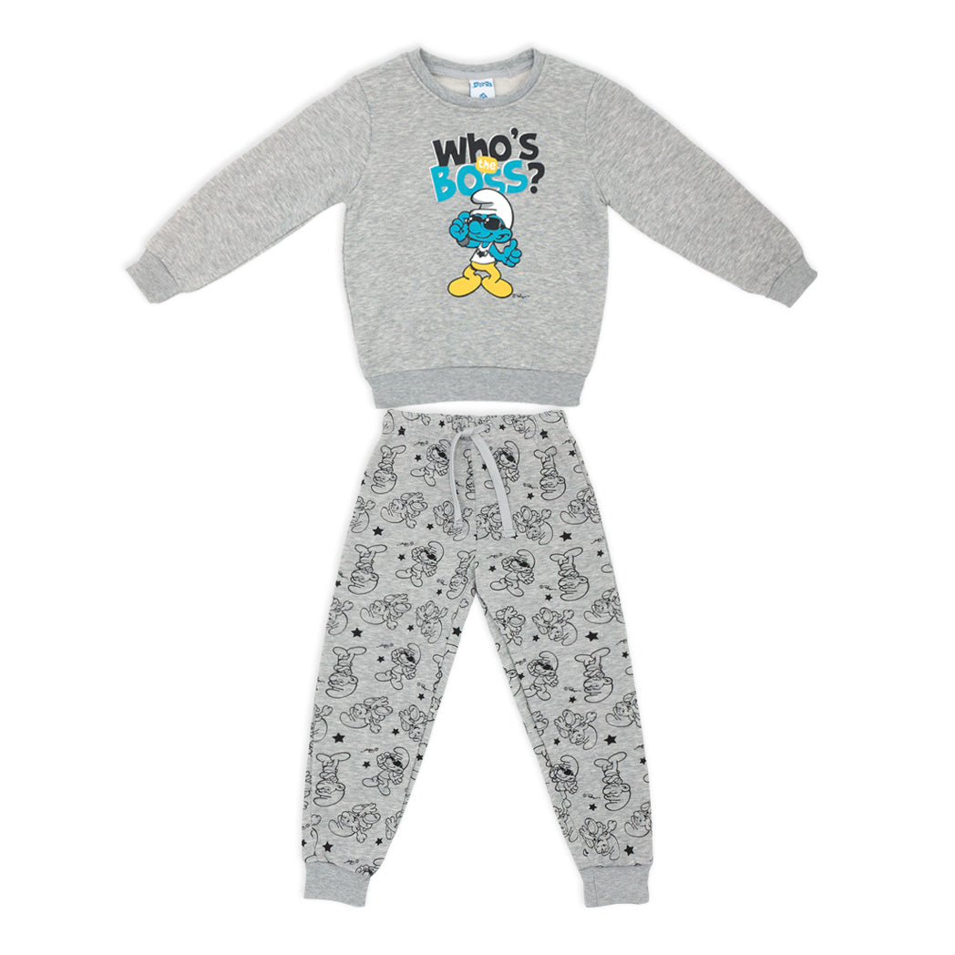 פיג'מת פוטר עבה לבנים בגוון תכלת עם הדפס דרדסים