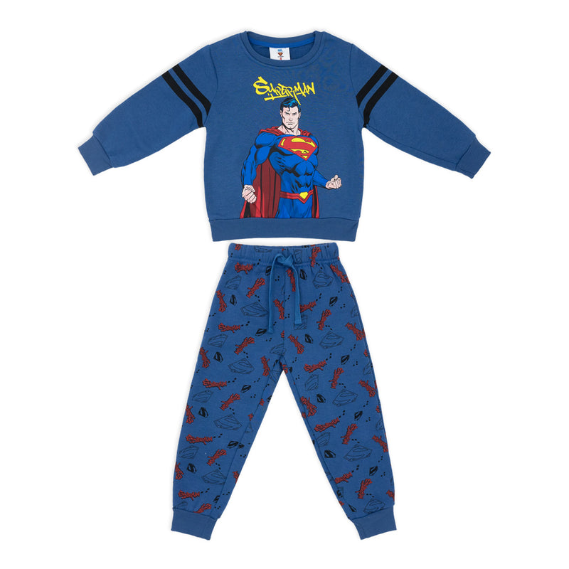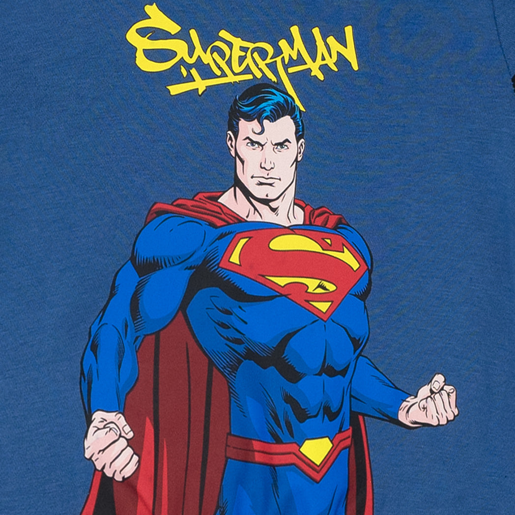 פיג'מת פוטר עבה לבנים בגוון כחול עם הדפס סופרמן