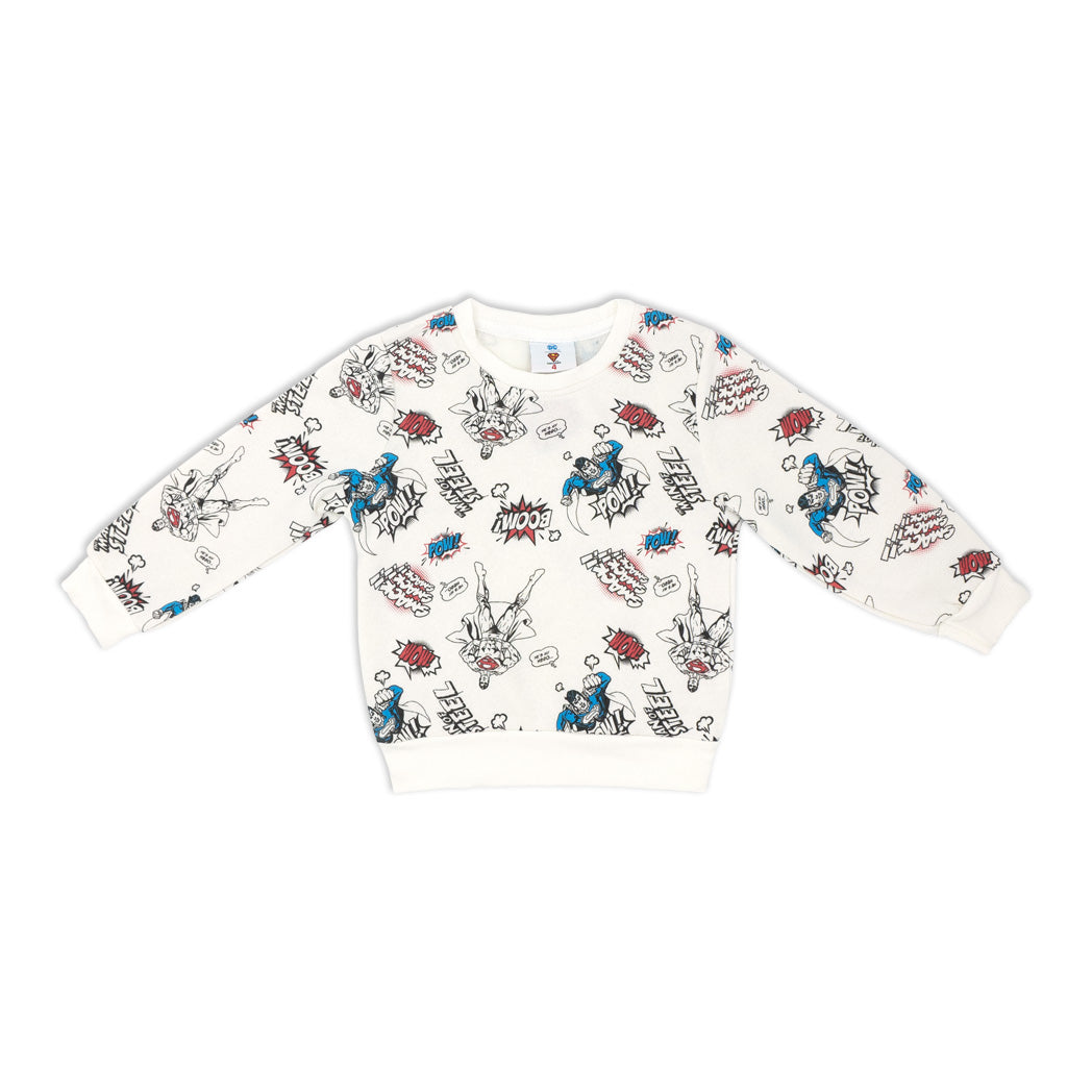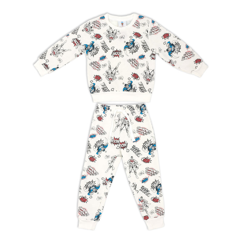 פיג'מת פוטר עבה לבנים בגוון קרם עם הדפס אולאובר סופרמן