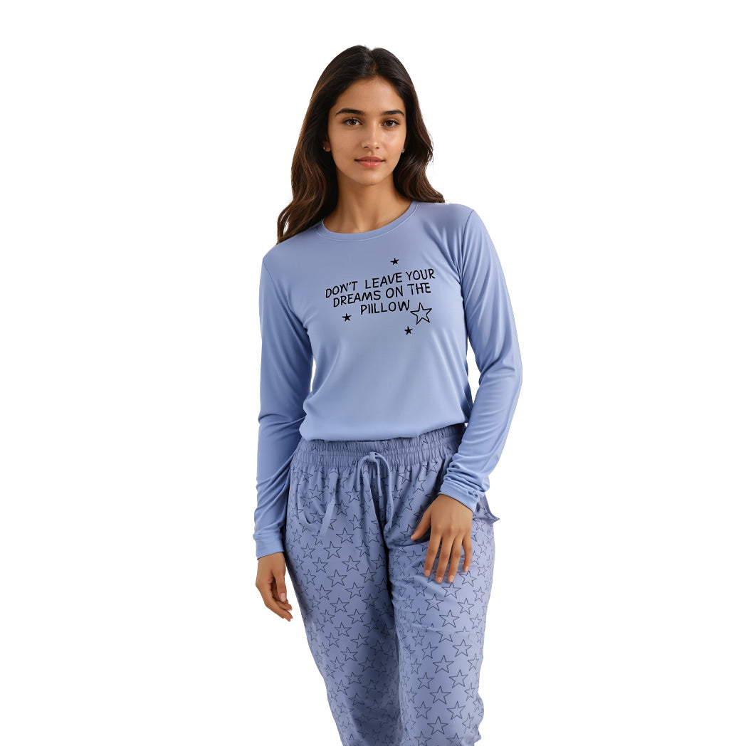 פיג'מה נשים דקה בצבע תכלת