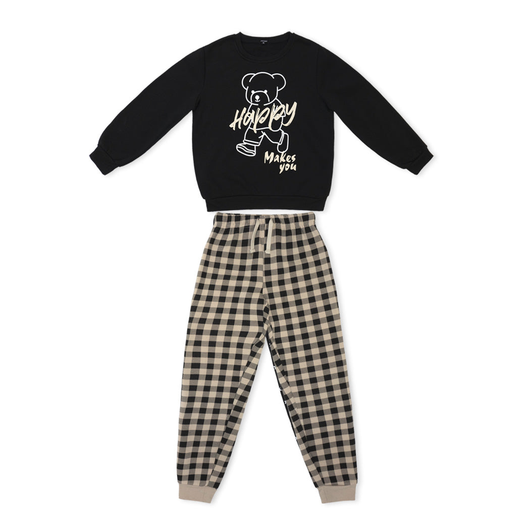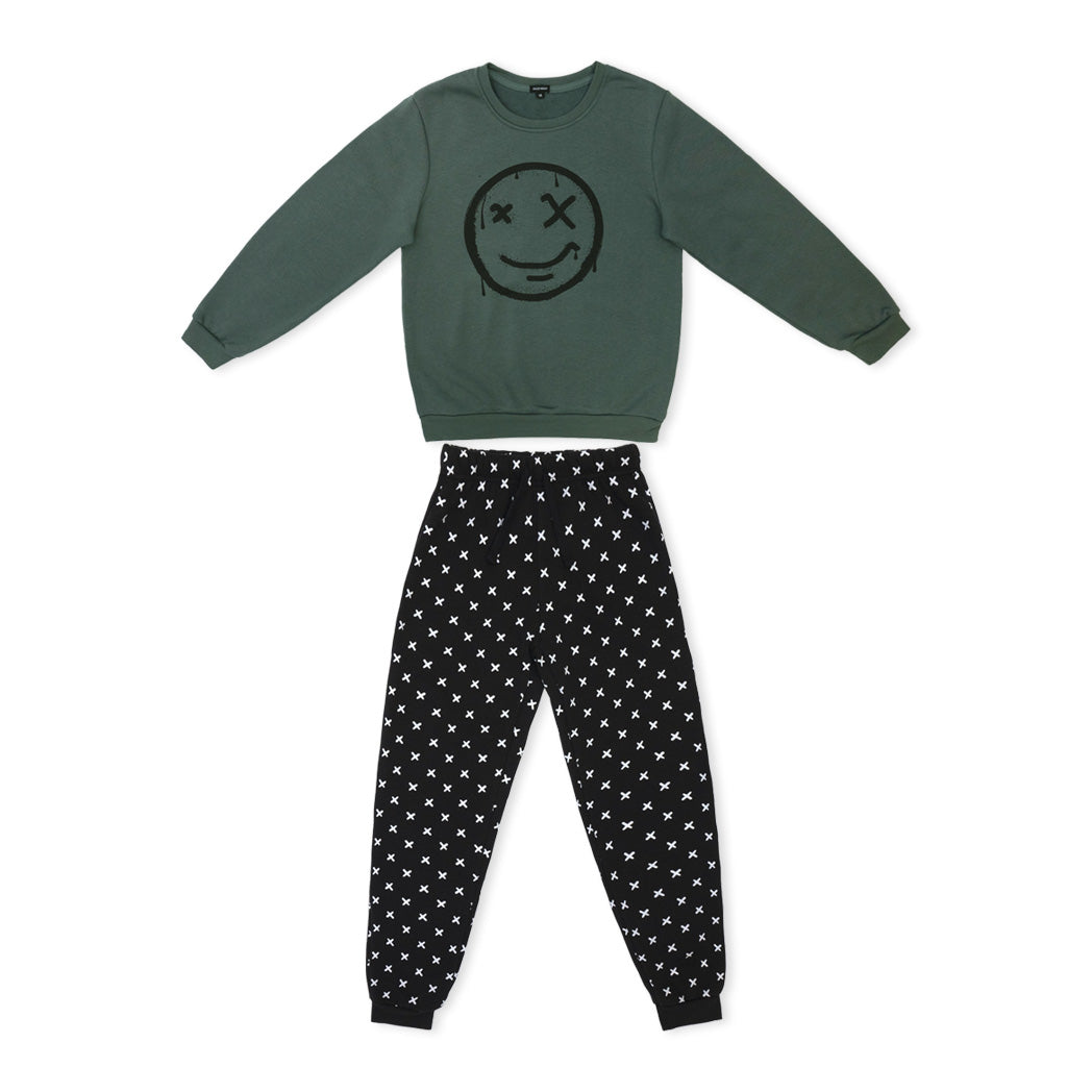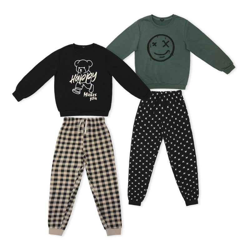 זוג פיג'מות בנים מודפסות בצבעי בז', שחור וירוק
