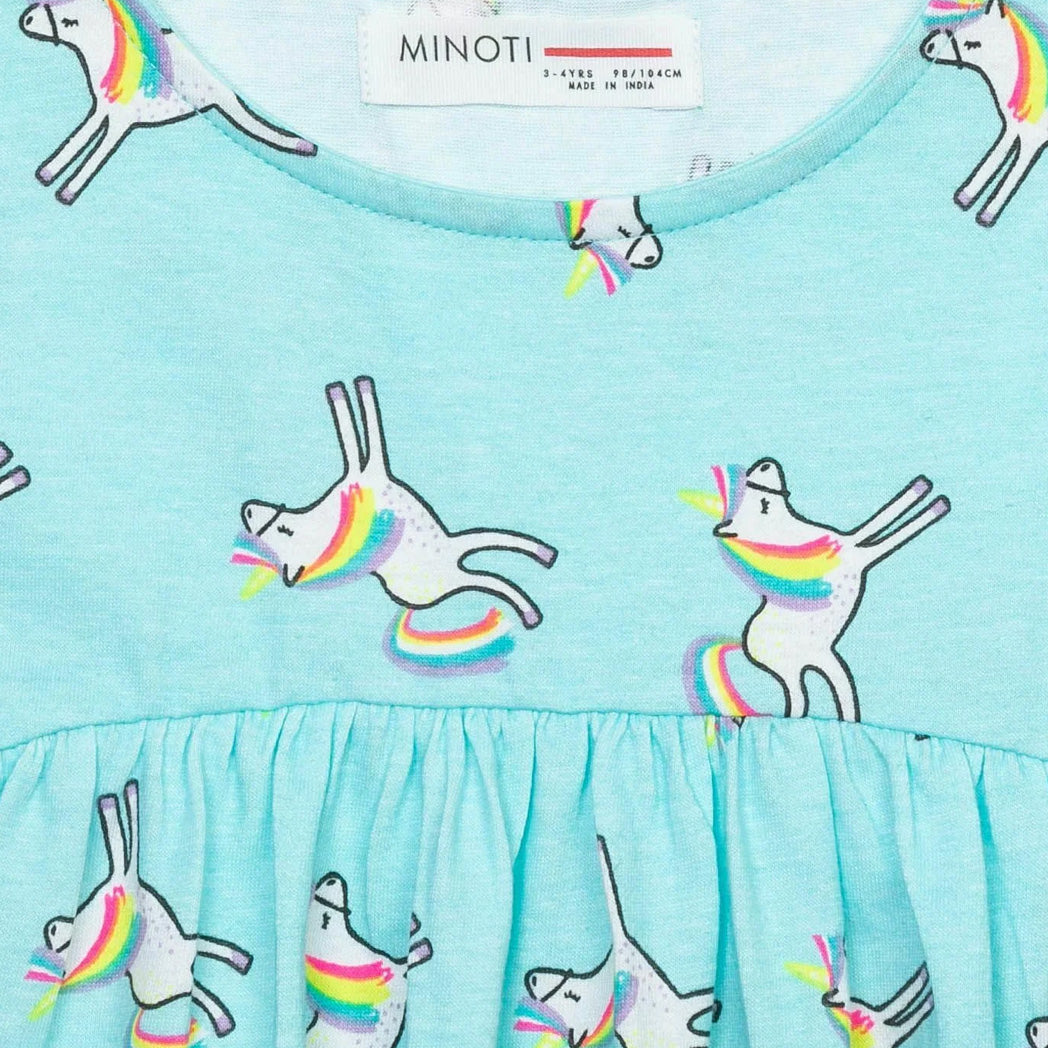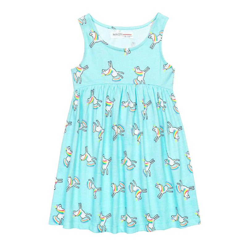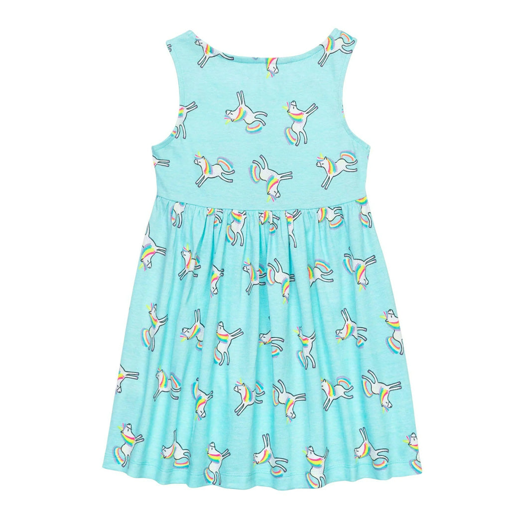 שמלת קיץ תכלת-טורקיז ללא שרוולים עם הדפס חדי-קרן אולאובר