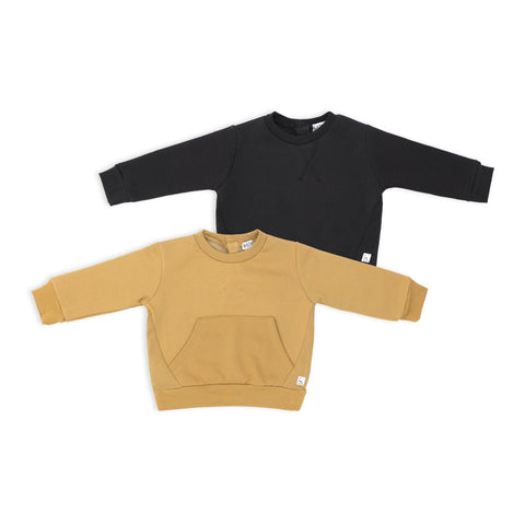 זוג חליפות בגד גוף לתינוק בשני חלקים בגווני תכלת, קאמל וחום בהיר