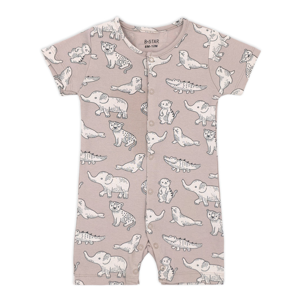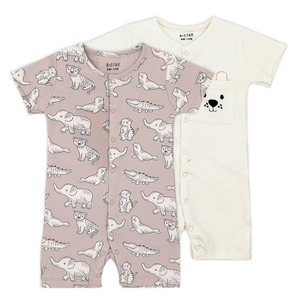זוג אוברולים קצרים לתינוק עם סגירת לחצנים והדפסים