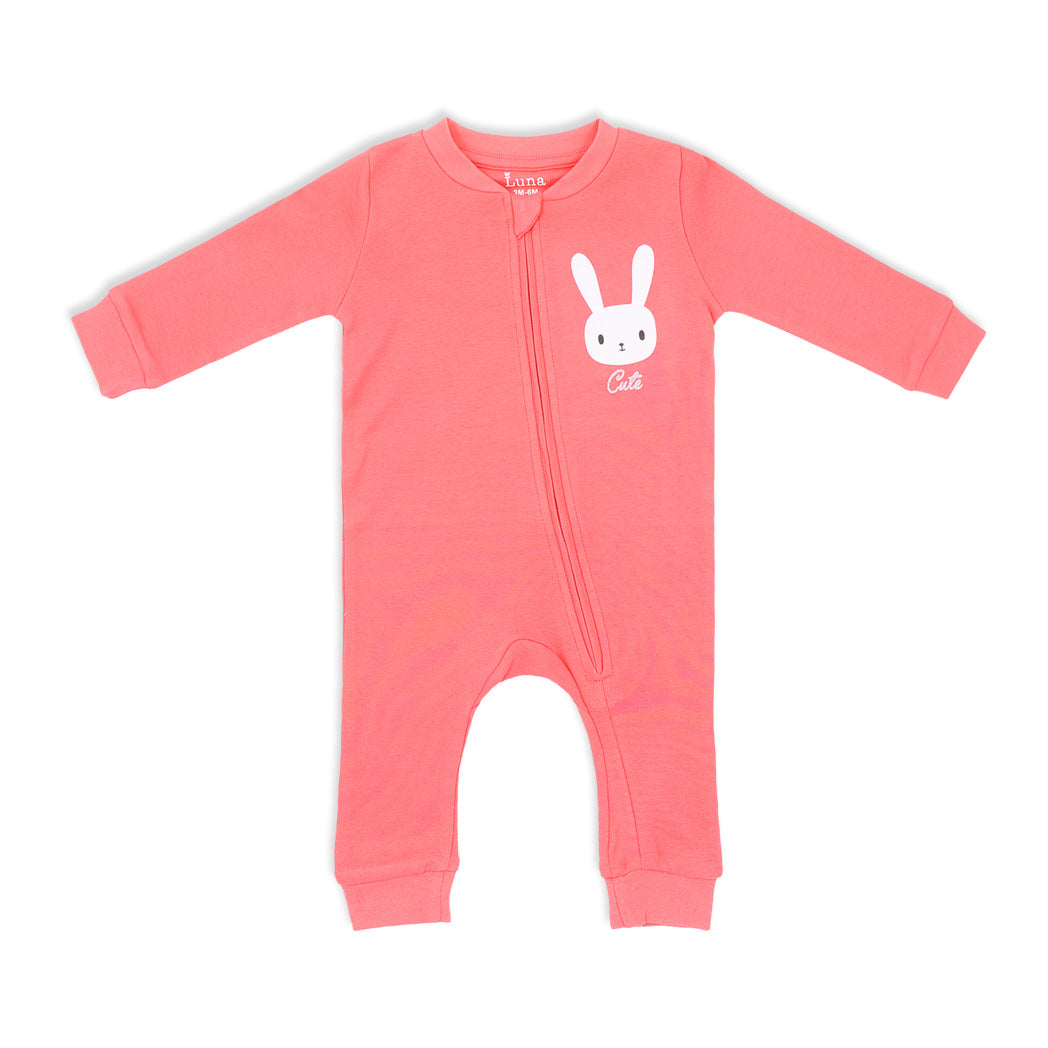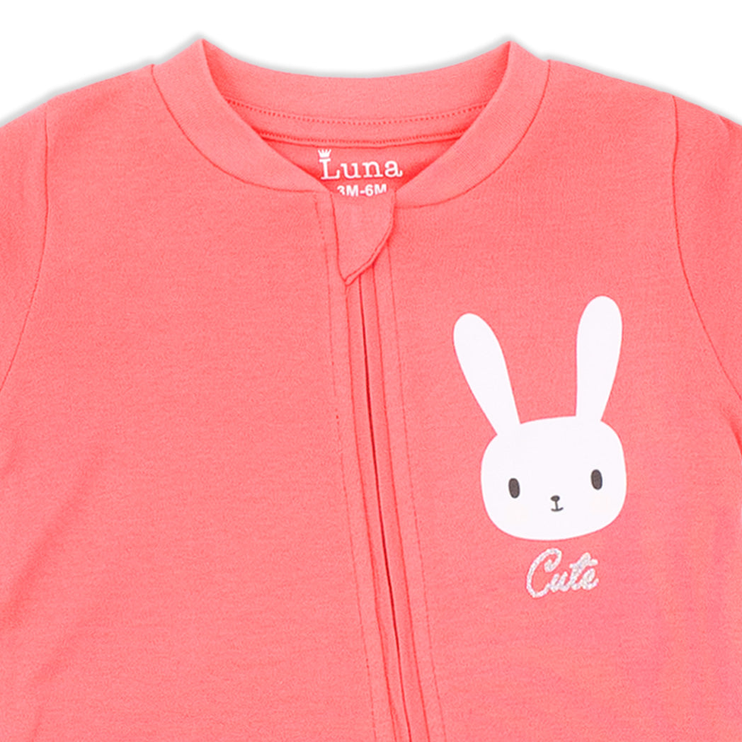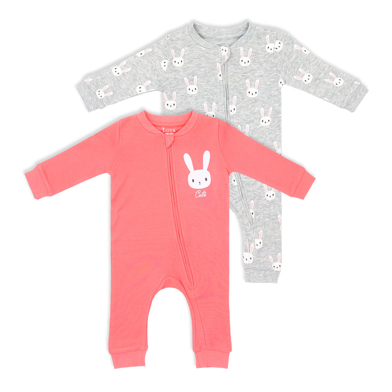 זוג אוברולים לתינוק עם רוכסן והדפסי ארנבות מתוקים