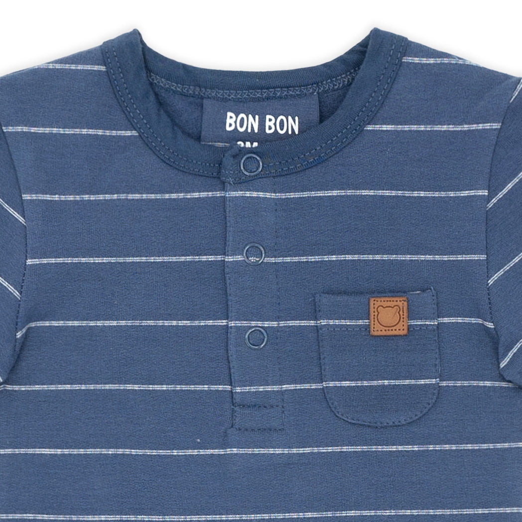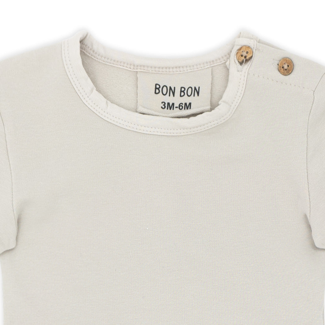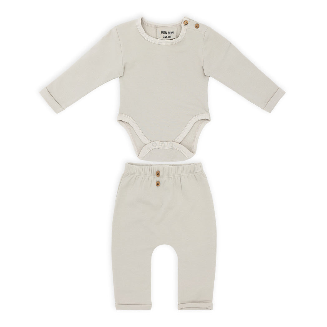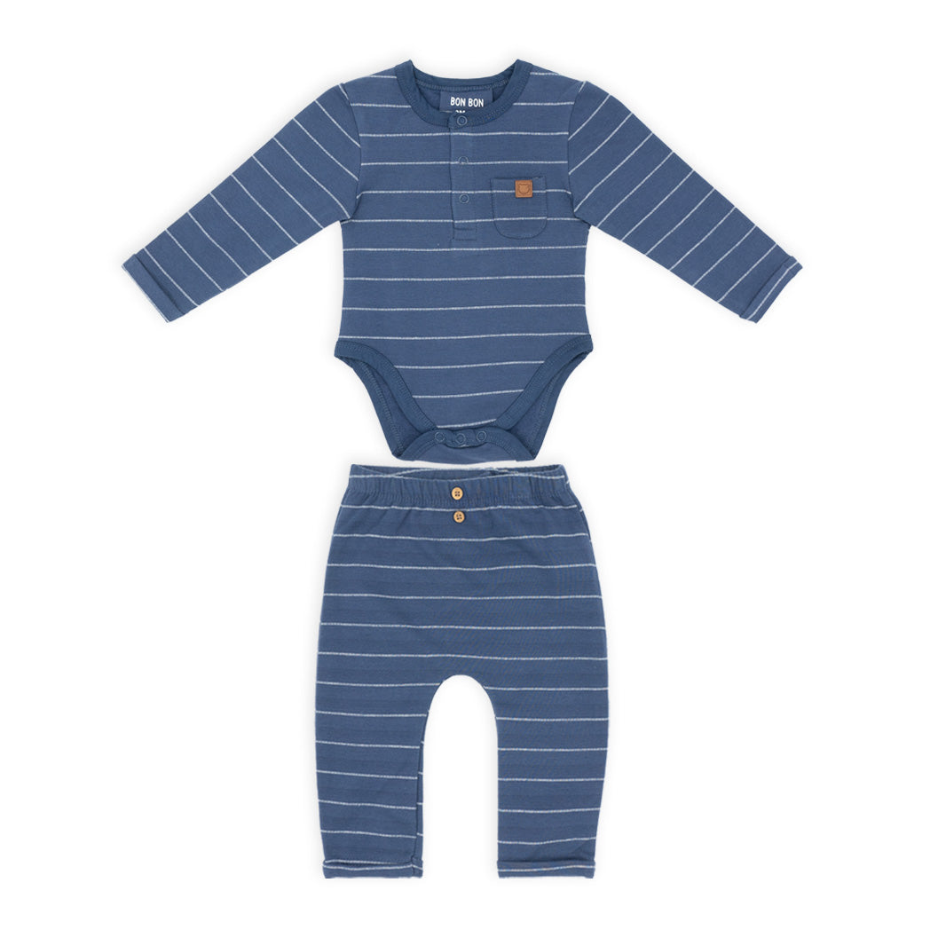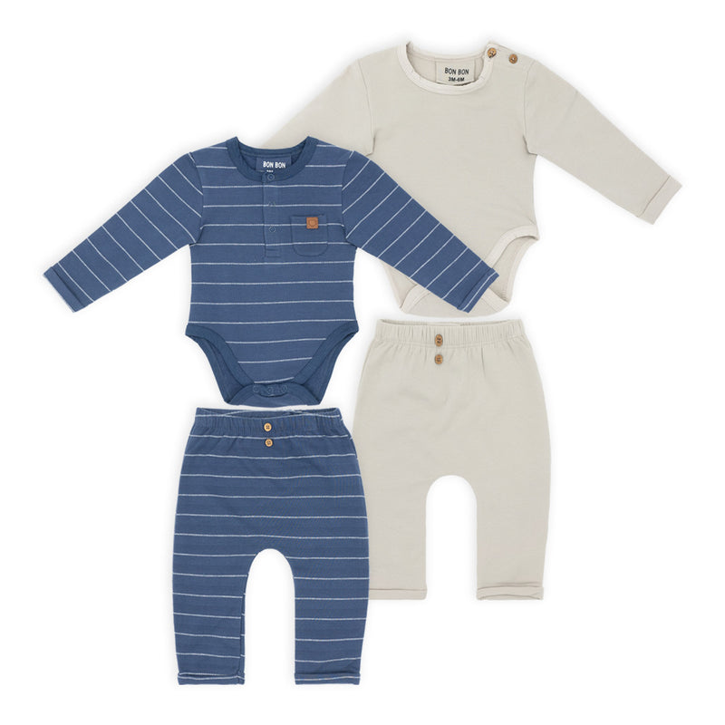 זוג חליפות בגד גוף לתינוק בשני חלקים בגווני חול וכחול-ג'ינס