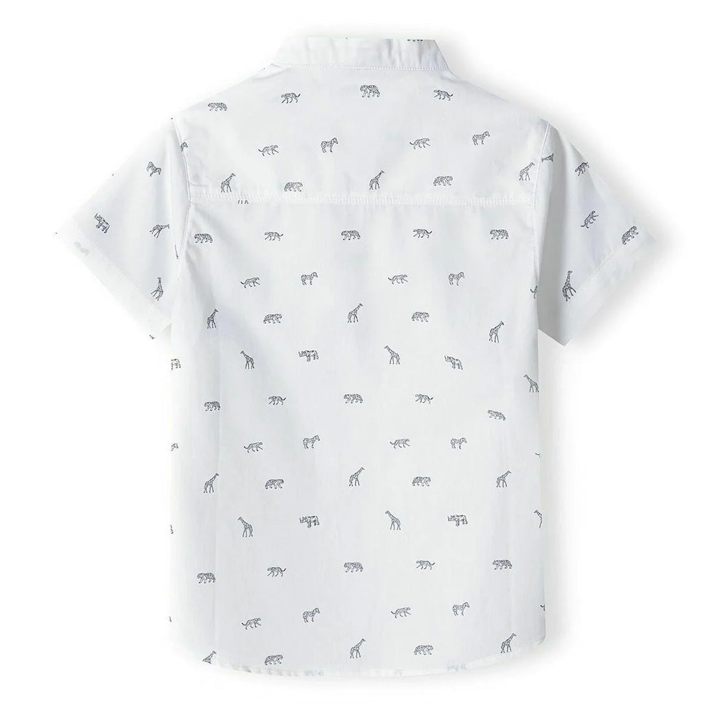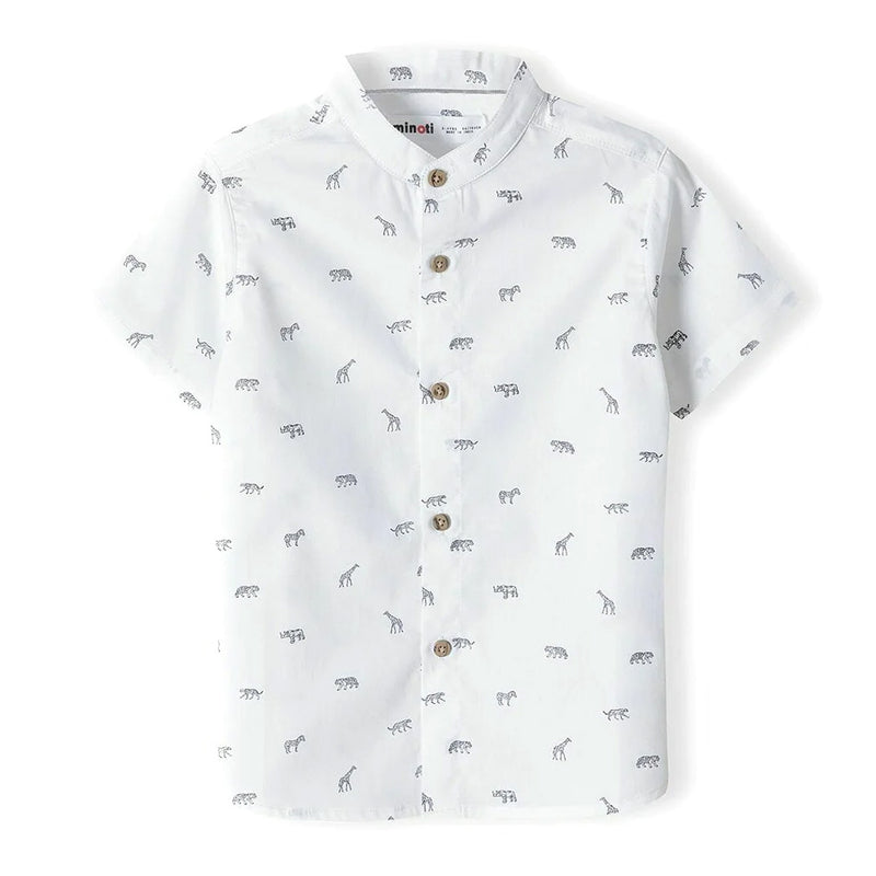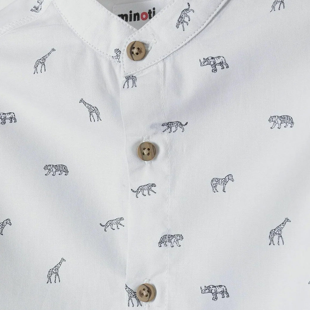 חולצת תינוק מינוטי לבנה מכופתרת עם הדפס חיות אולאובר