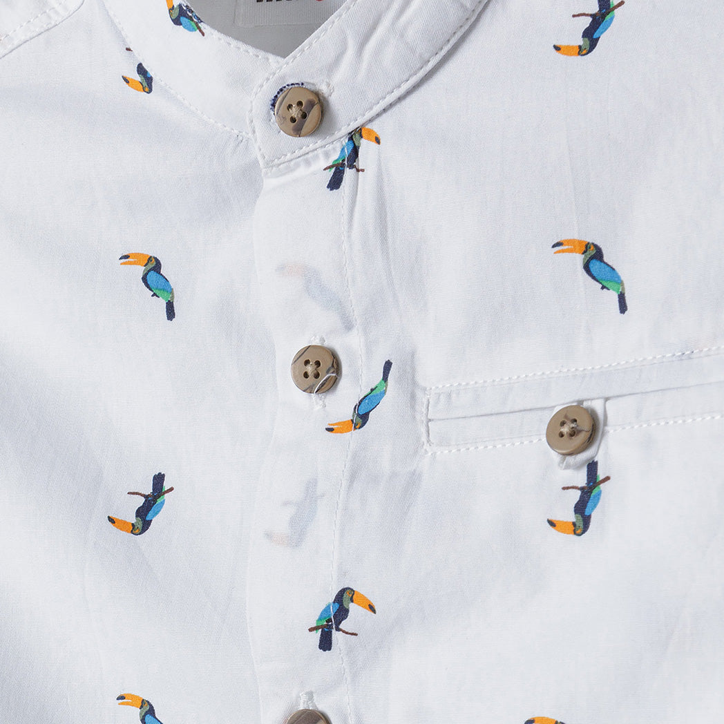 חולצת תינוק מינוטי לבנה מכופתרת עם הדפס טוקאנים אולאובר