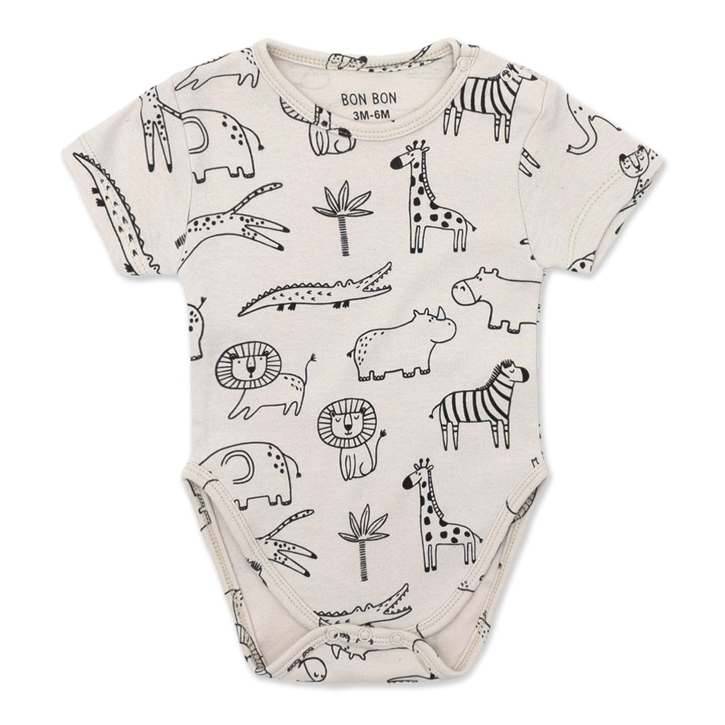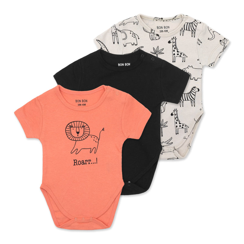 שלישיית בגדי גוף - שחור ועם הדפסי חיות