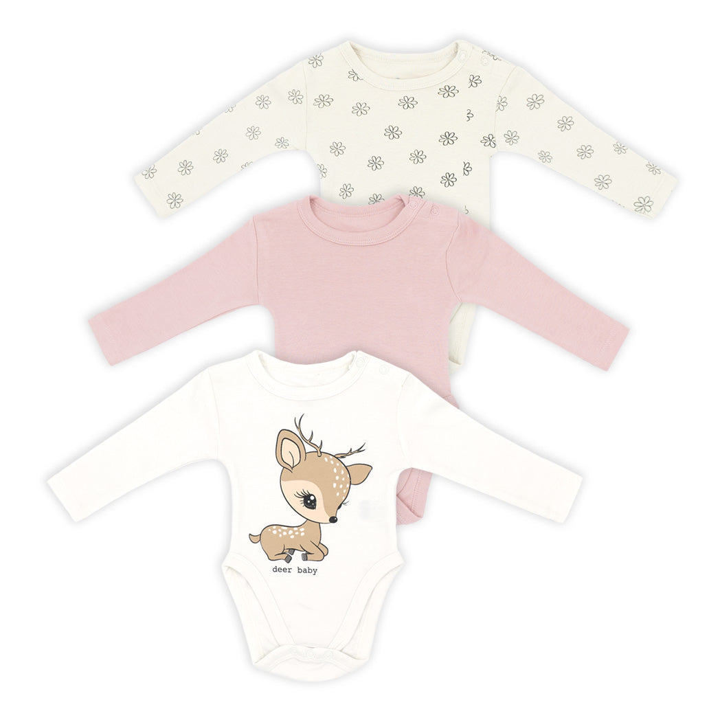 מארז שלישיית בגדי גוף אינטרלוק בגוונים שונים לתינוקת