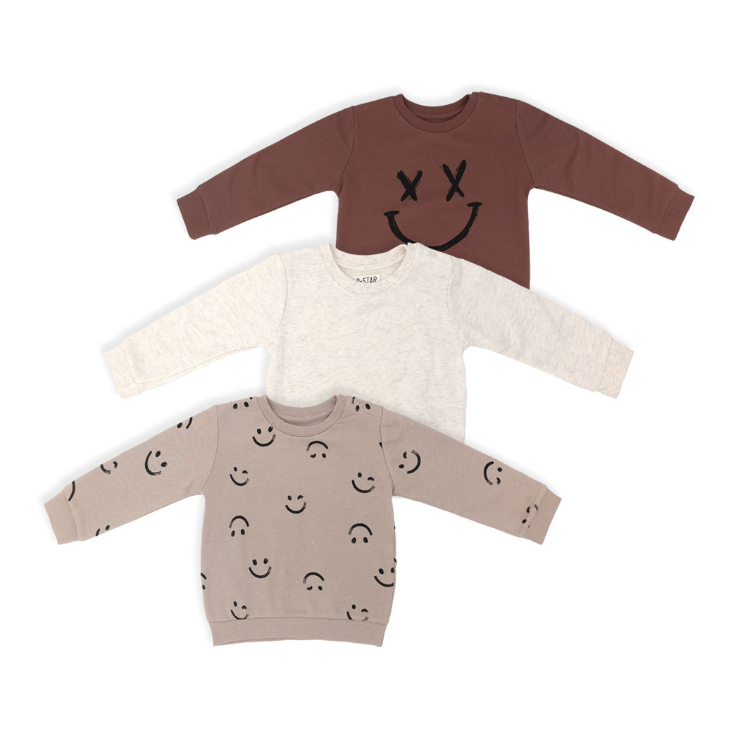 שלישיית חולצוות פוטר חמות לתינוק בגווני חום-בריק, קרם מלאנז' ואבן