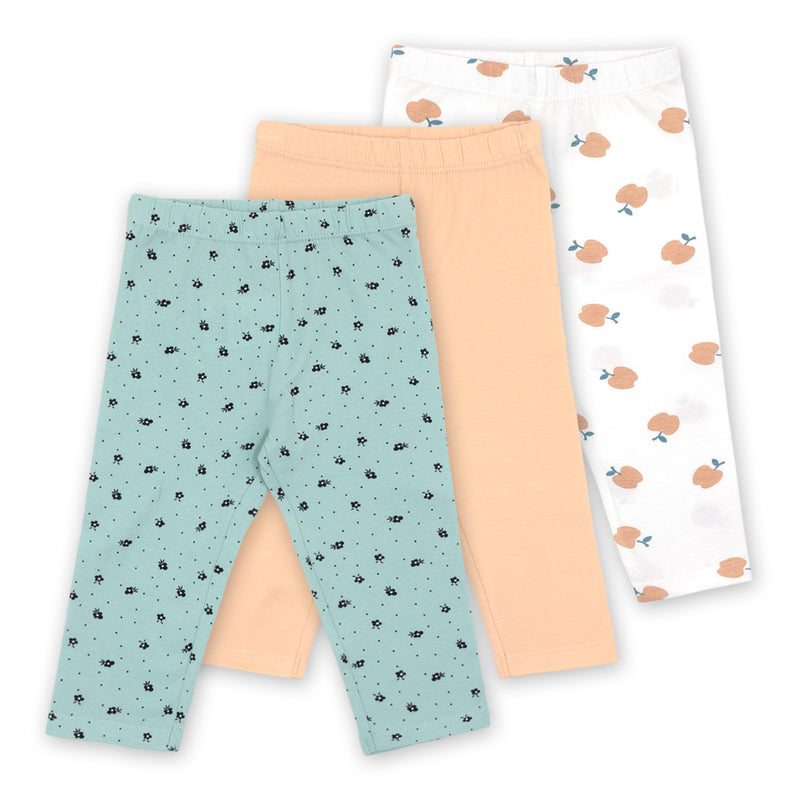 שלישיית מכנסי טייץ לתינוקת - כתום חלק, מנטה וקרם מודפסים אולאובר