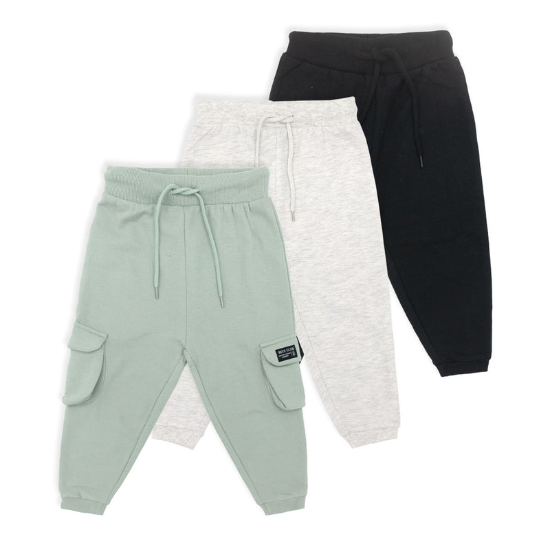 שלישיות מכנסי תינוקות בגווני מנטה, אפור מלאנז' ושחור