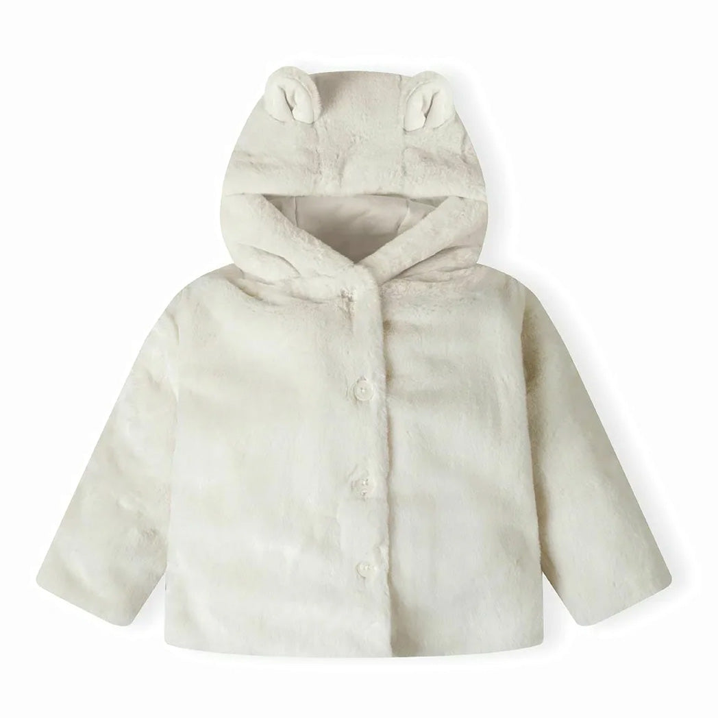 ג'קט פרווה רכה עם אזניים בכובע מינוטי