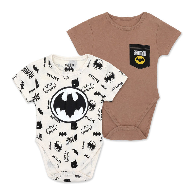 זוג בגדי גוף לתינוק עם הדפסי באטמן מובלטים