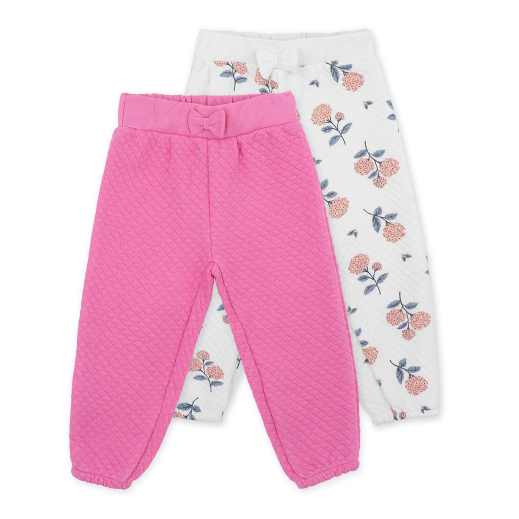 שני מכנסיים מבד קווילט ורוד-לבן תינוקות בנות