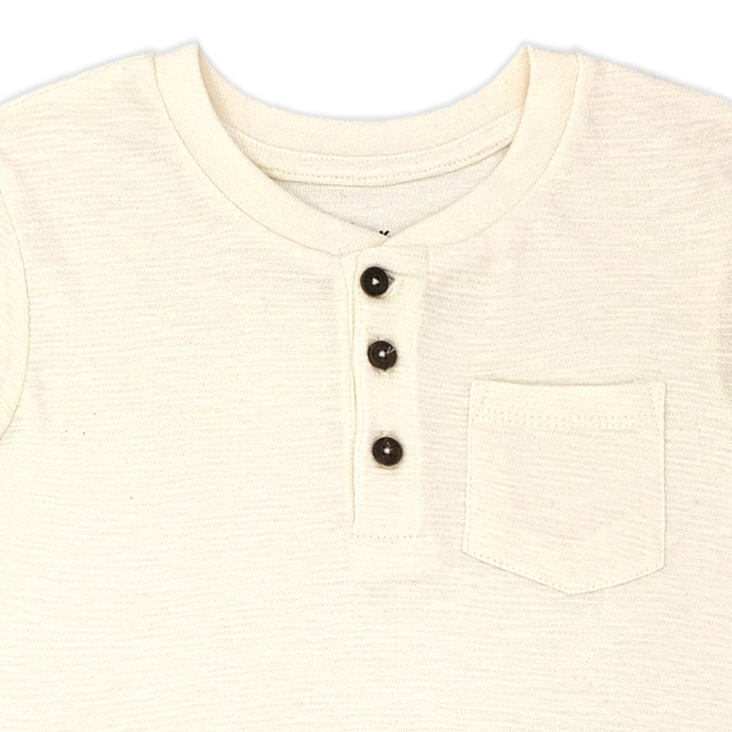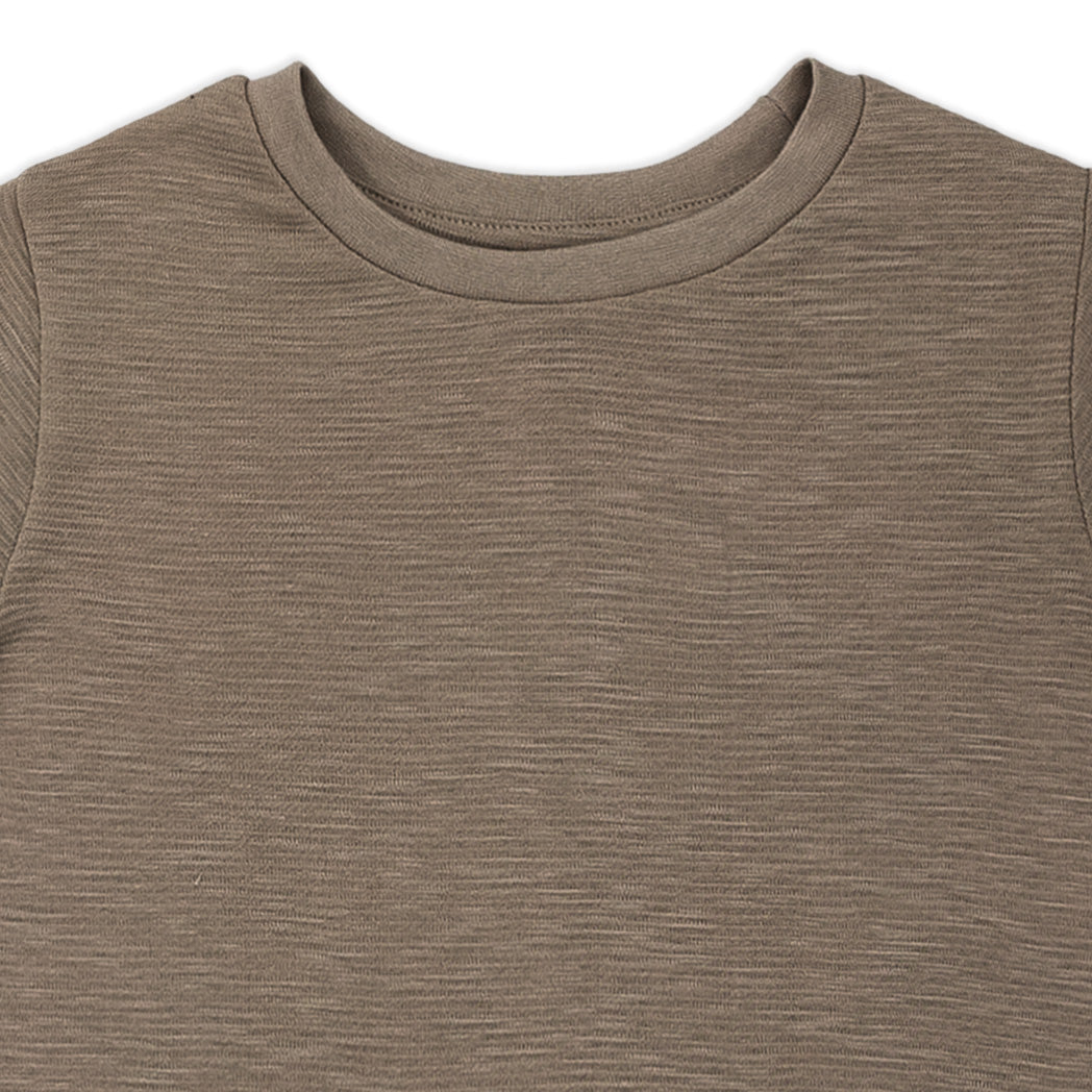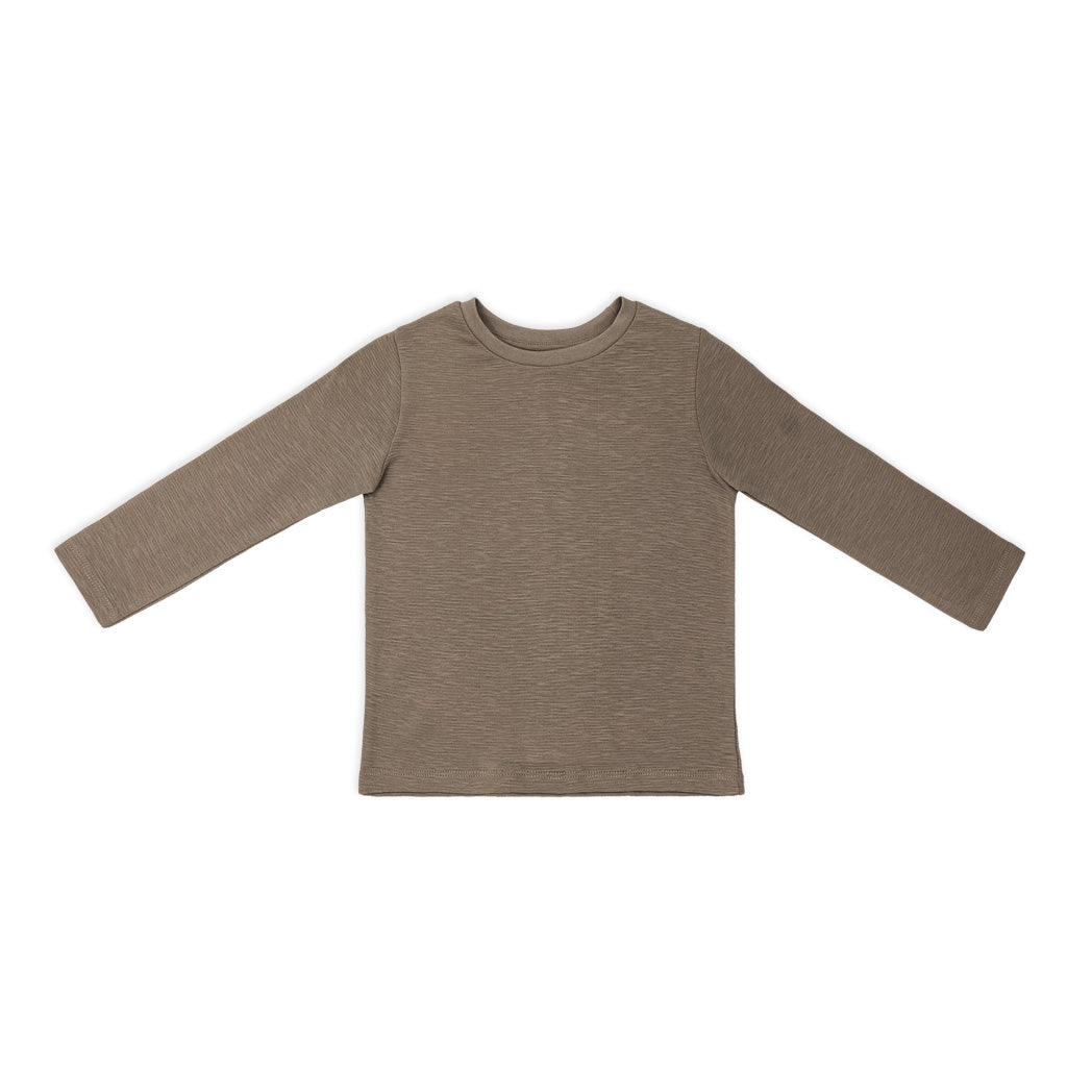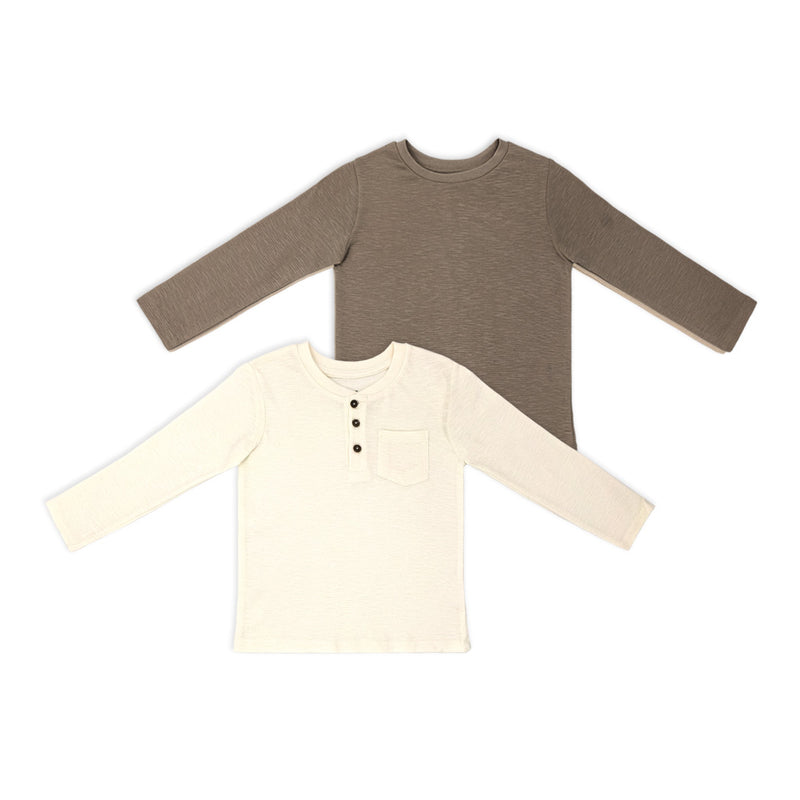 שתי חולצות בנים מבד אותומן בגווני קרם וחום-קפה, עם ובלי כפתורים בצווארון