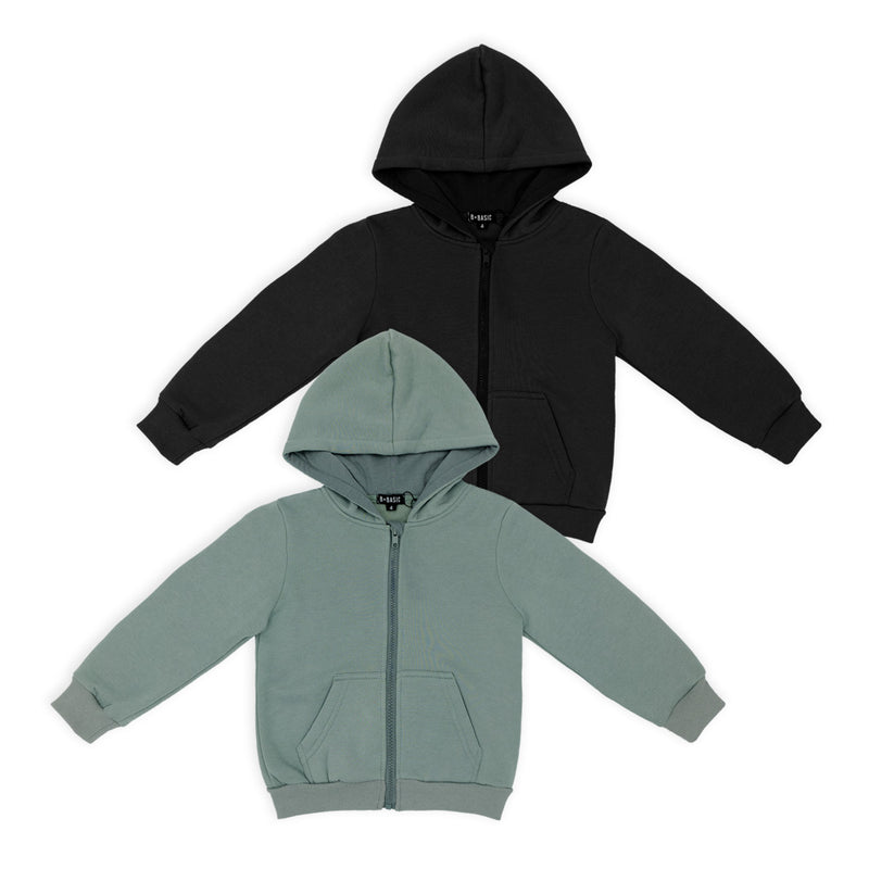 זוג קפוצ'ונים עבים לפעוטים וילדים עם כיס קדמי בגווני ירוק-זית ושחור