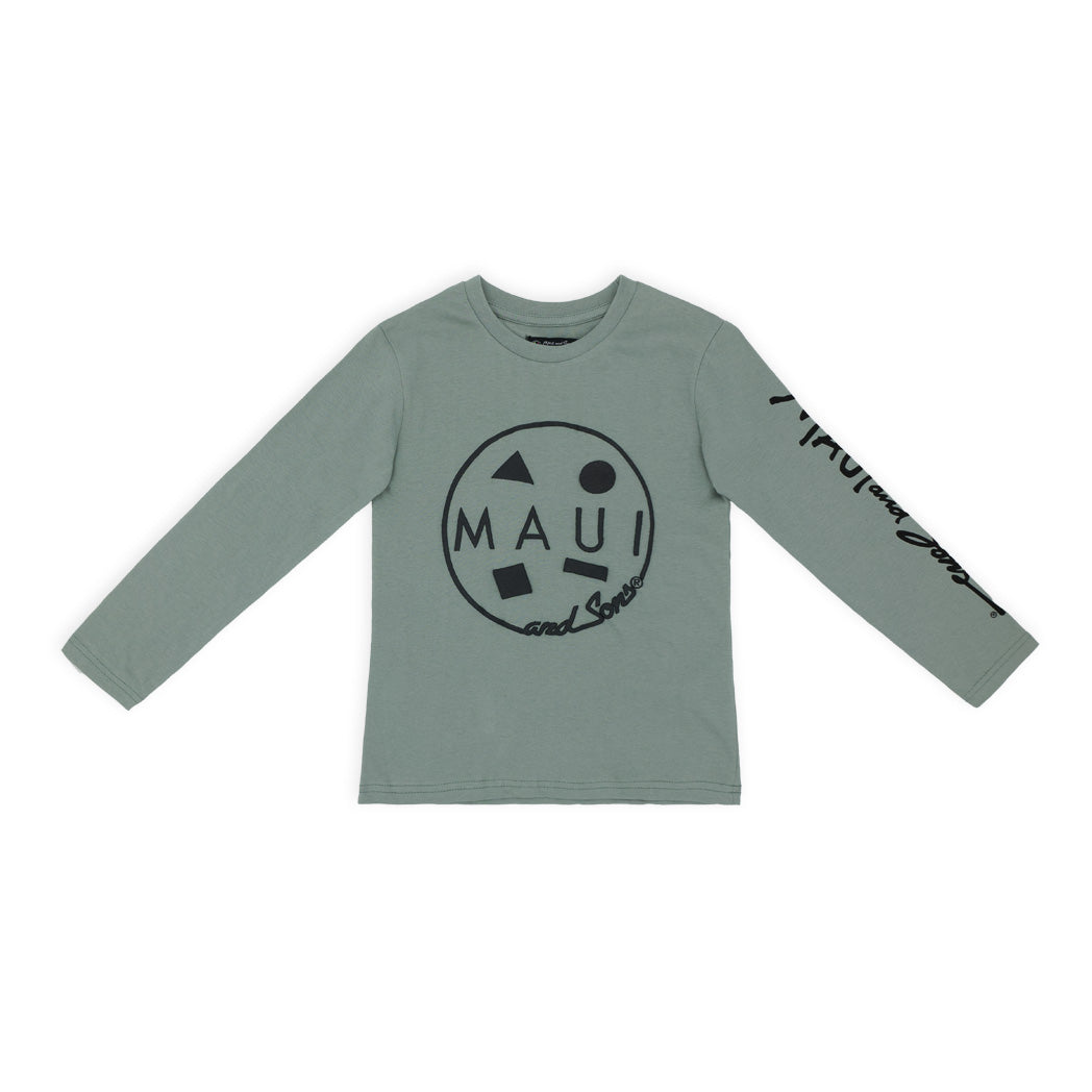 חולצת בנים בגוון ירוק זית עם הדפס מאווי בולט והדפס בשרוול