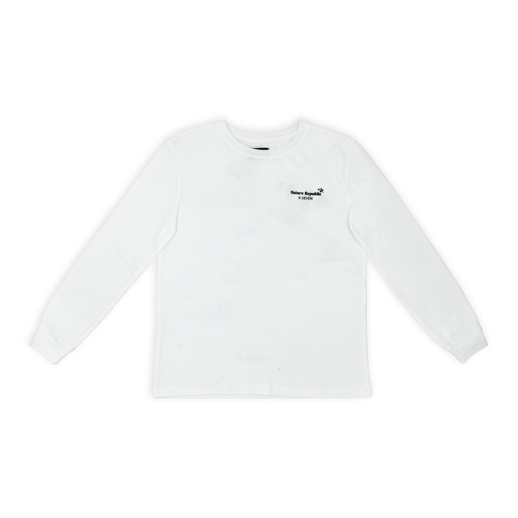 חולצת בנים לבנה עם סיומת ריב והדפס מלפנים ומאחור