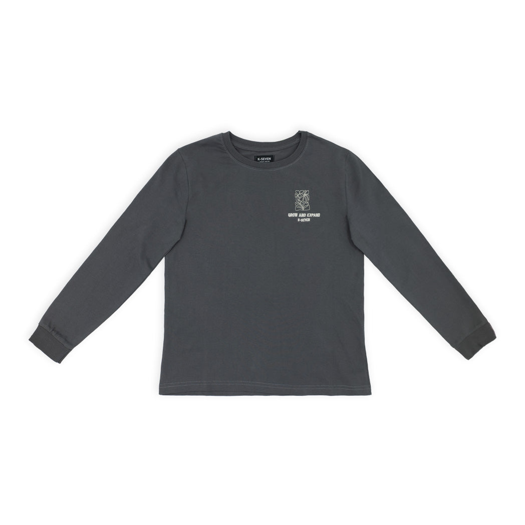 חולצת בנים אפורה עם סיומת ריב ורקמה מלפנים ומאחור