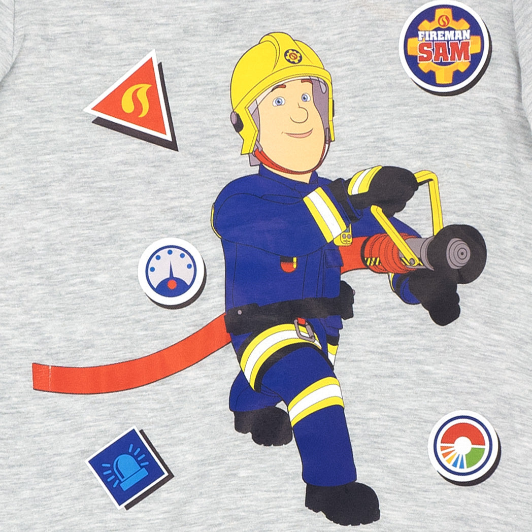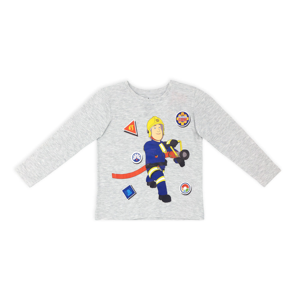חולצת ילדים ופעוטים דקה לעונת מעבר בגוון אפור מלאנז' עם הדפס Fireman Sam