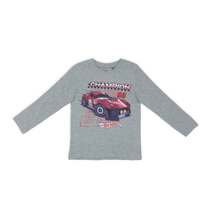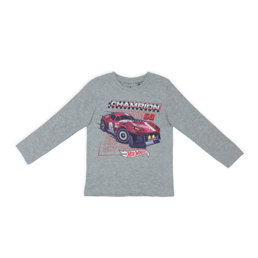 חולצת ילדים דקה לעונת מעבר בגוון אפור מלאנז' עם הדפס הוט ווילז