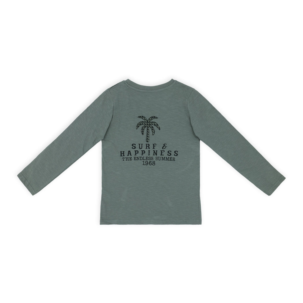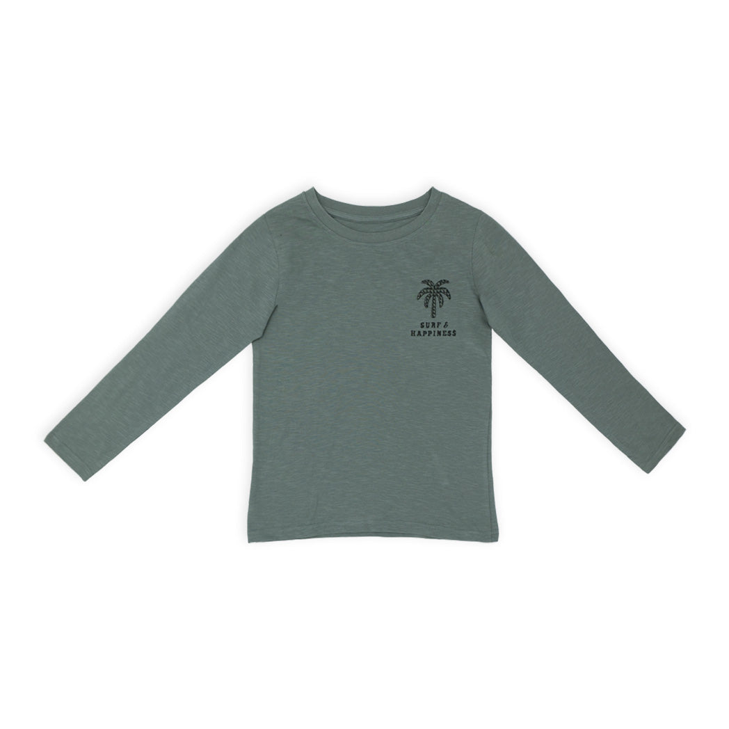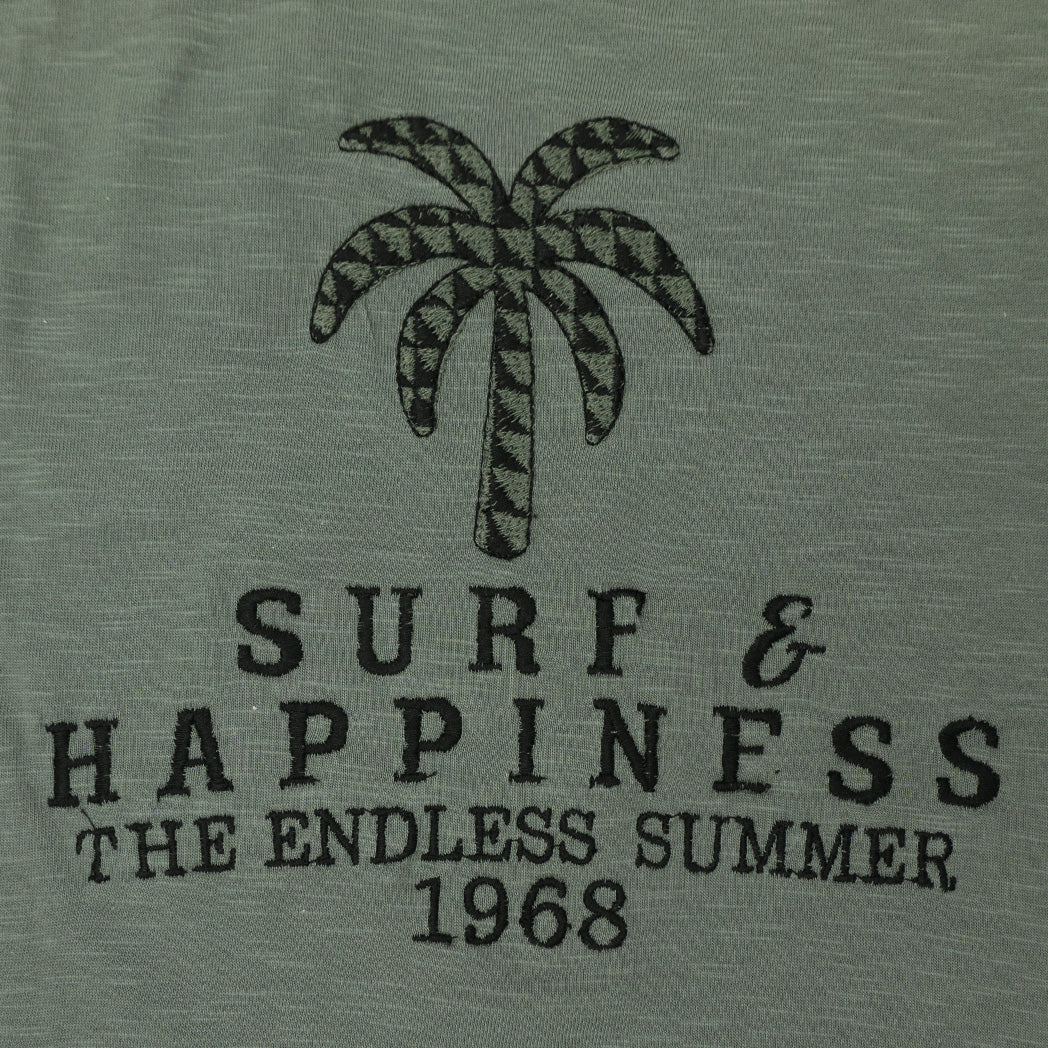 חולצת בנים בגוון ירוק זית מבד סלאב דק ורקמה מלפנים ומאחור