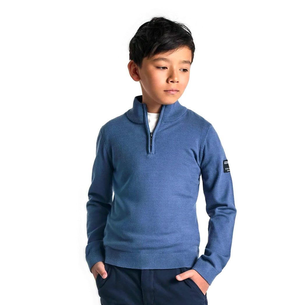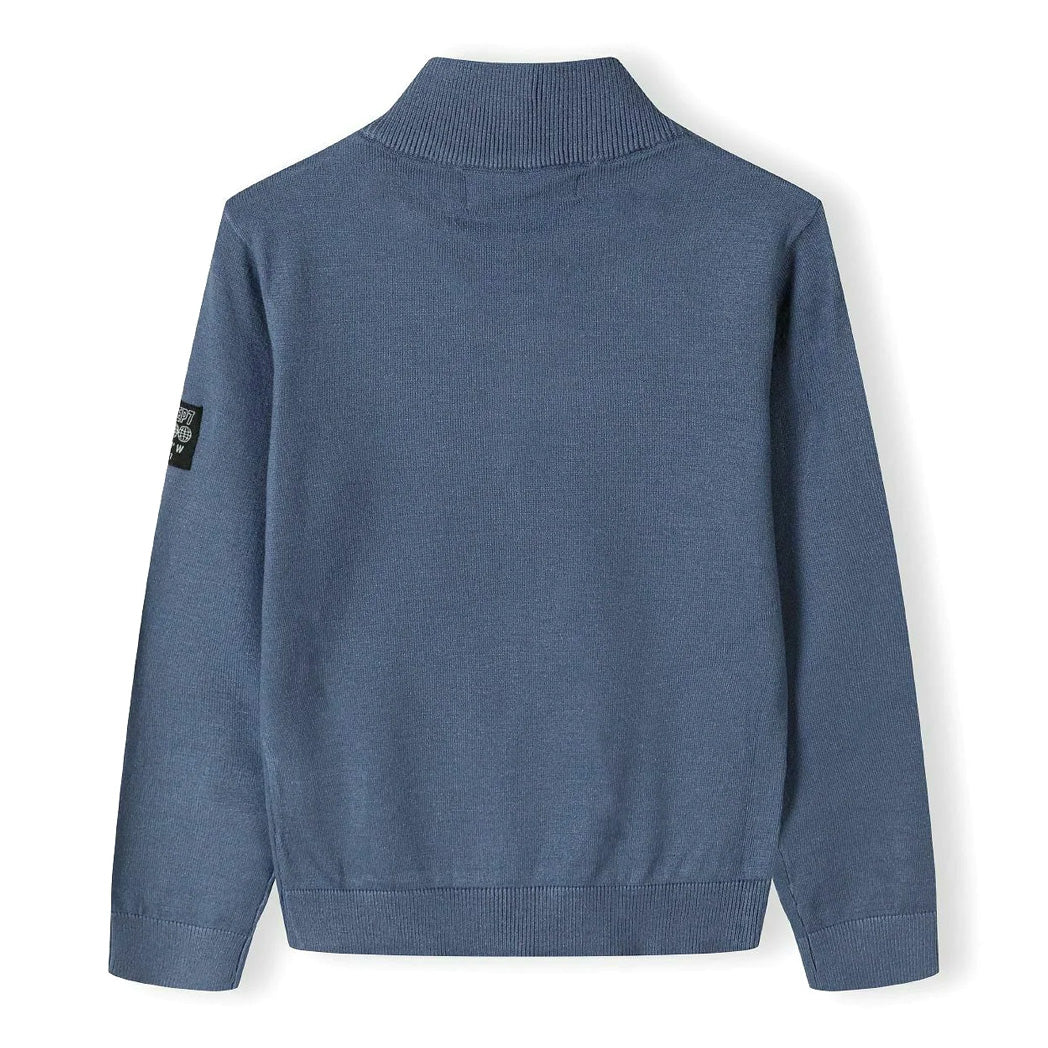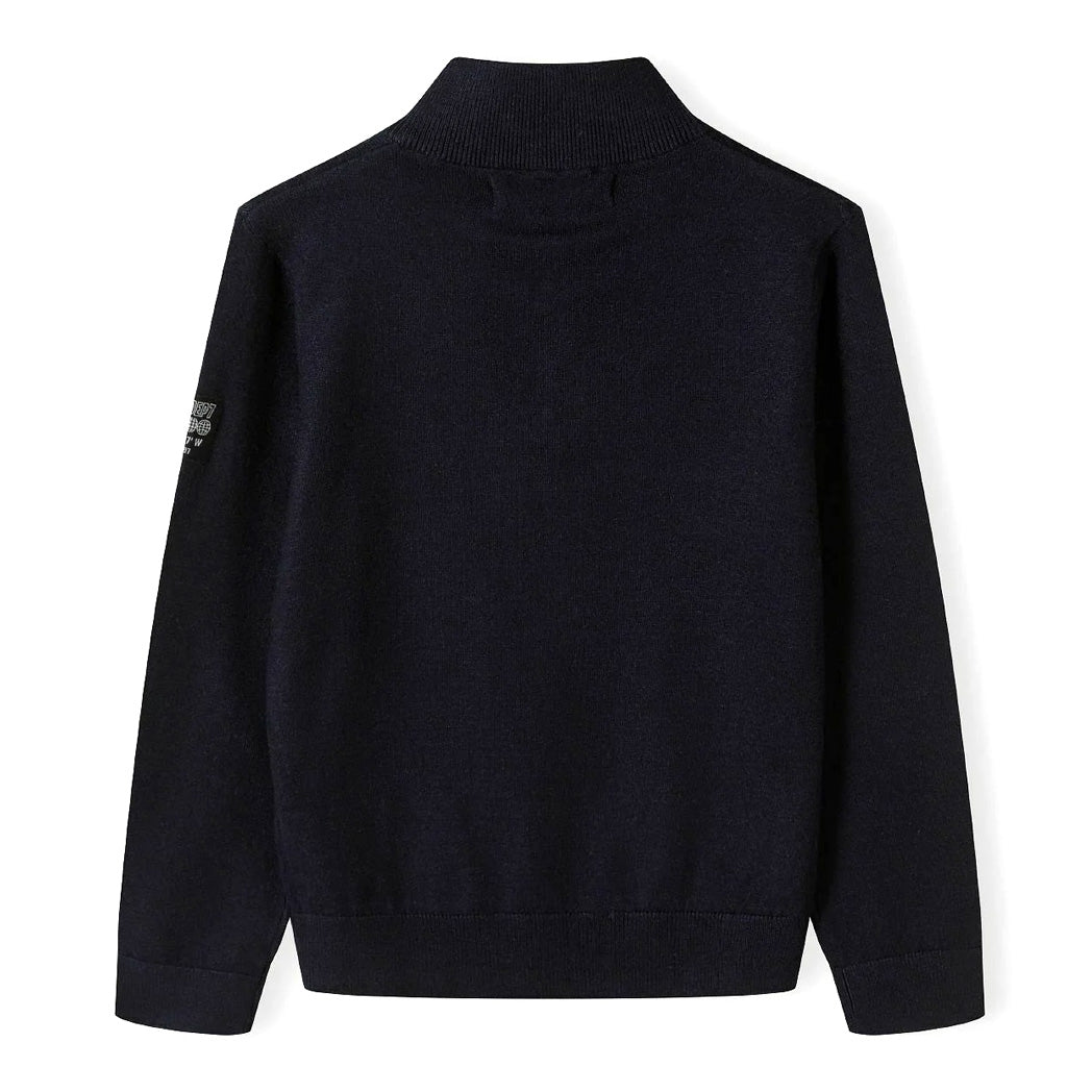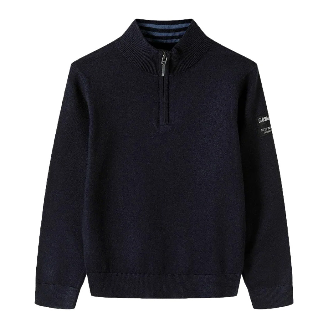 סריג דק מינוטי בנים עם תגית בשרוול ורוכסן בצווארון