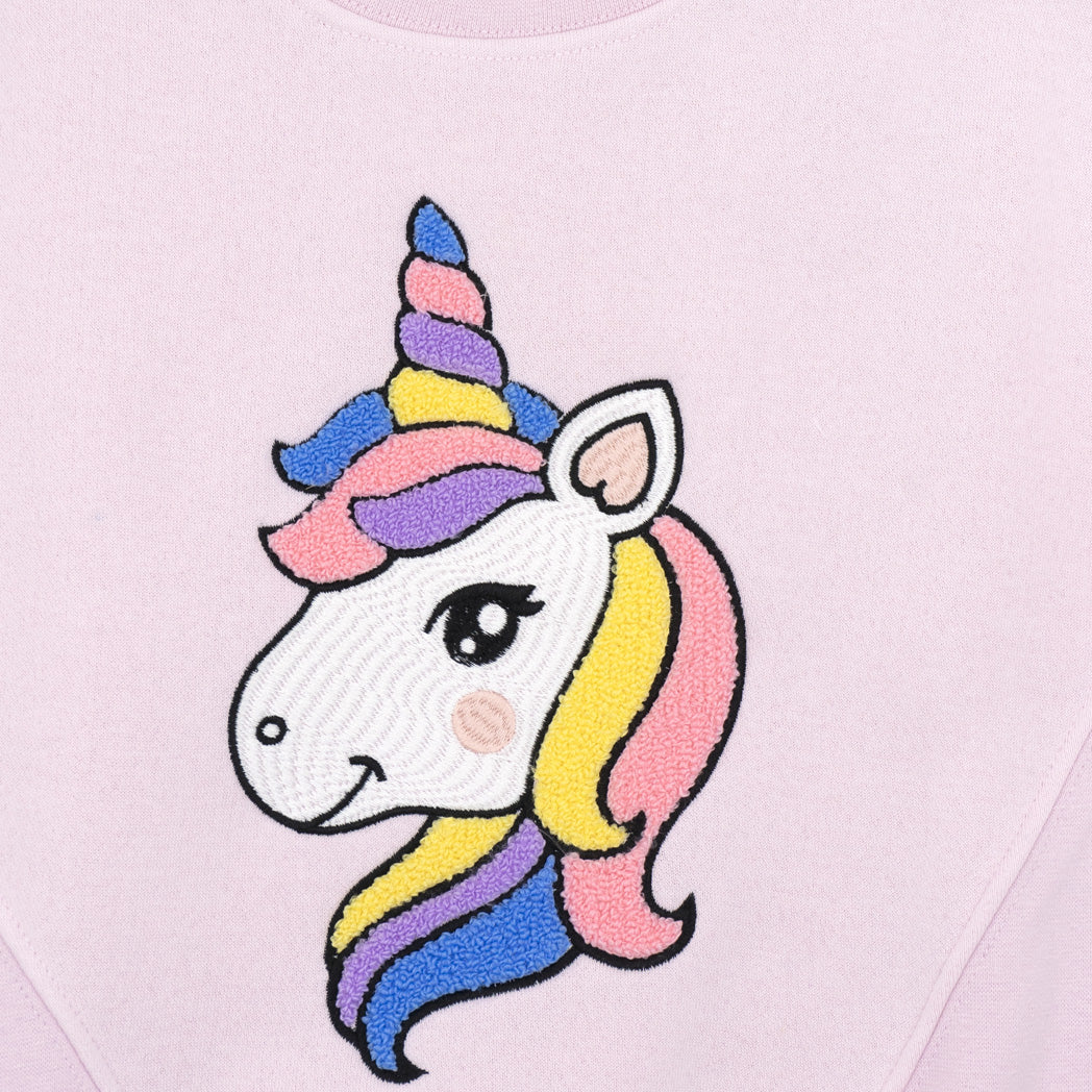 חולצת בנות בצבע ורוד בייבי עם אפליקציית פאץ' חד קרן