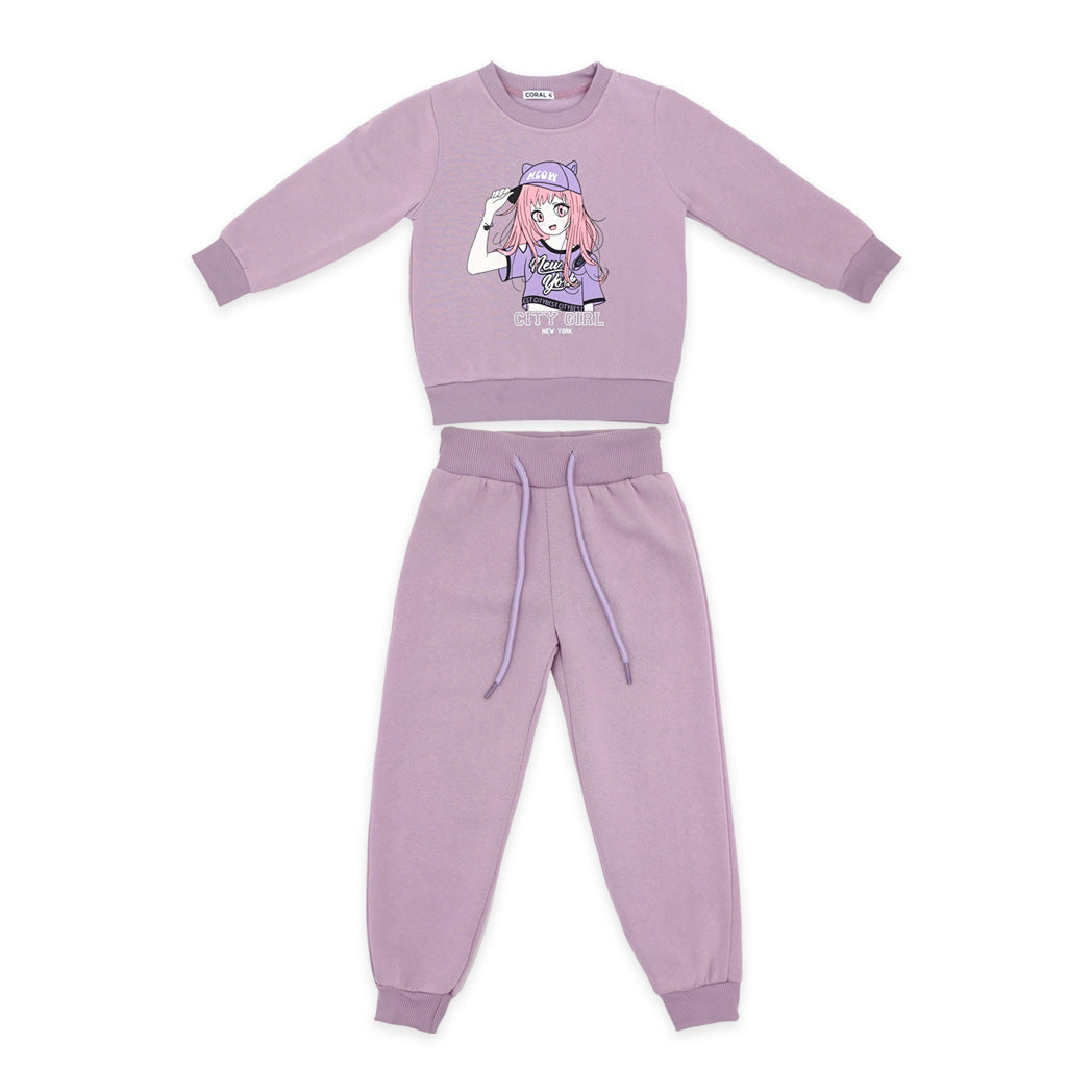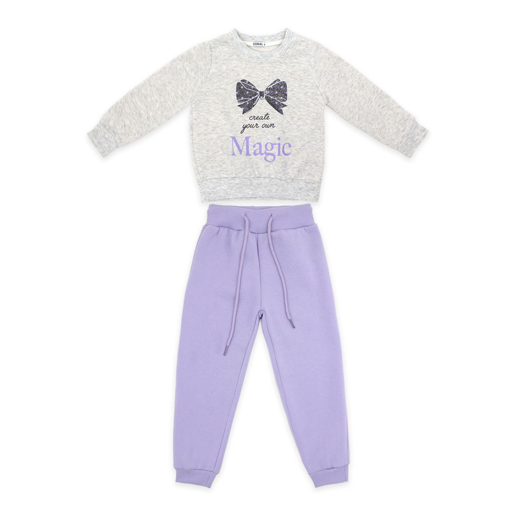 מארז 3 חליפות פוטר מודפסות סגול-אפור בנות