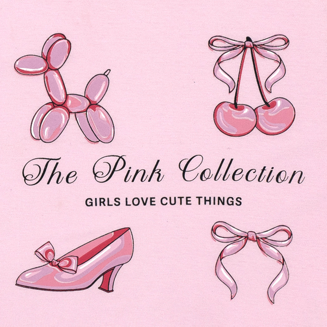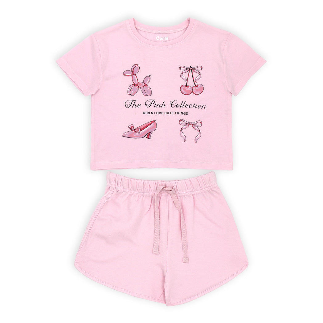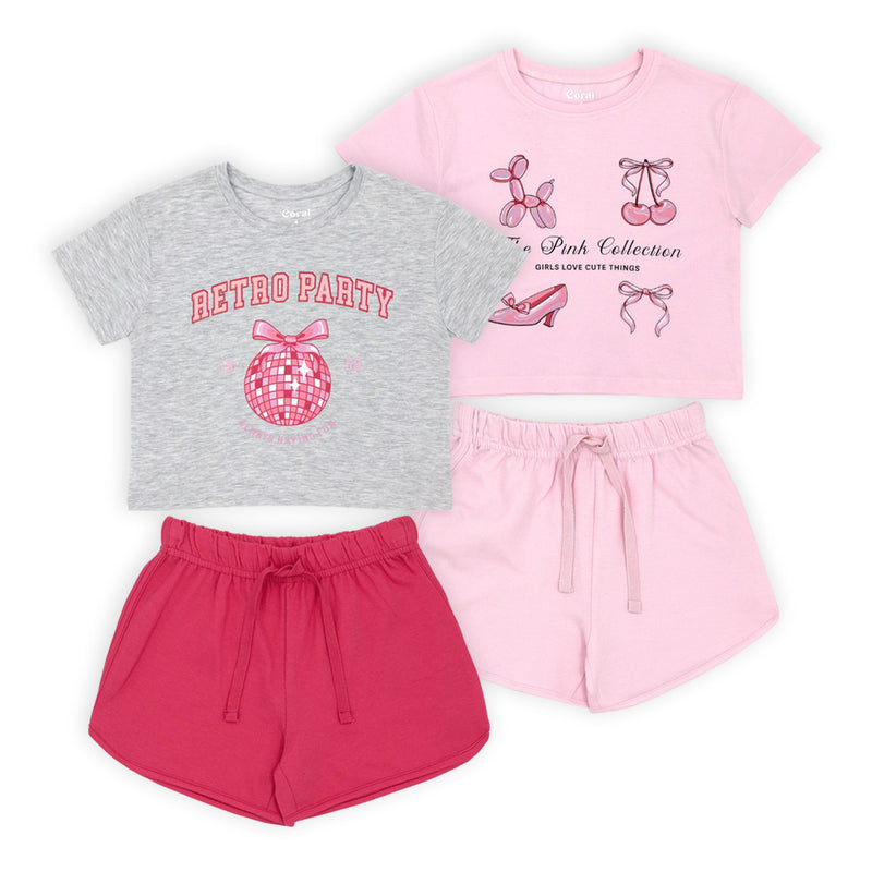 זוג חליפות קצרות לילדות בורוד ואפור עם הדפסים