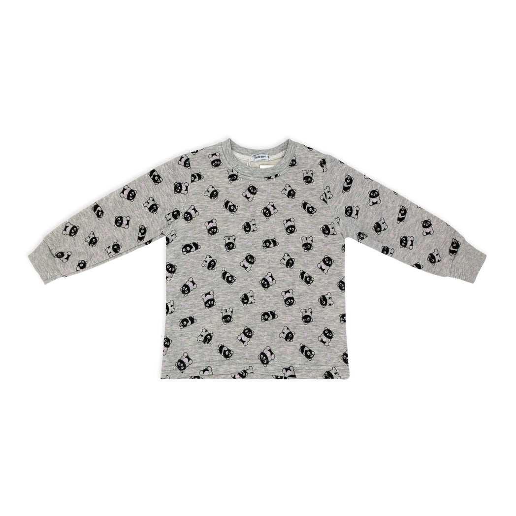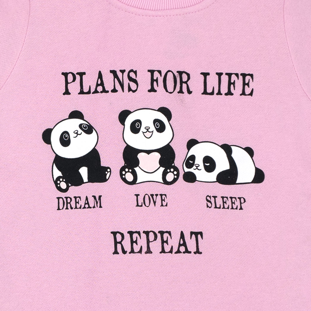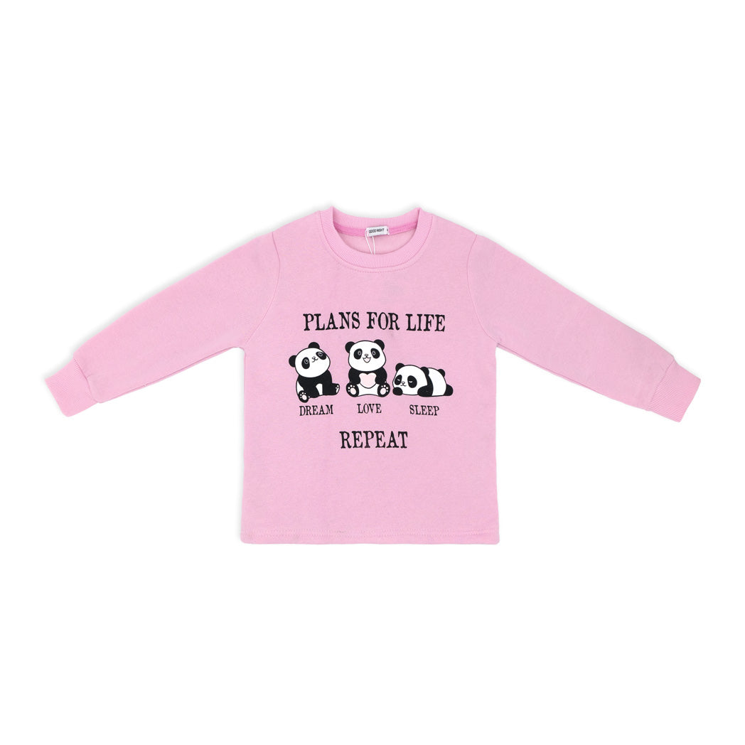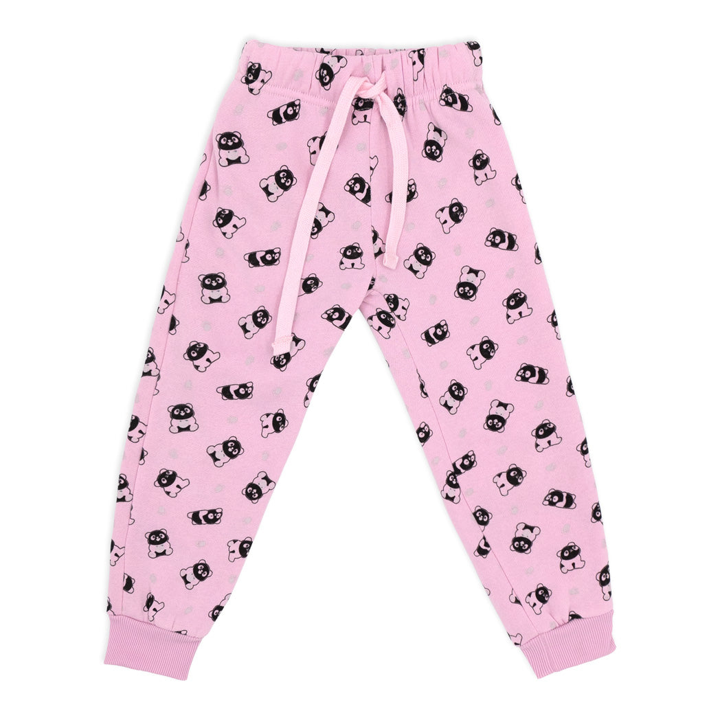 פיג'מת פוטר עבה לילדות בגווני ורוד ואפור עם הדפסי פנדות