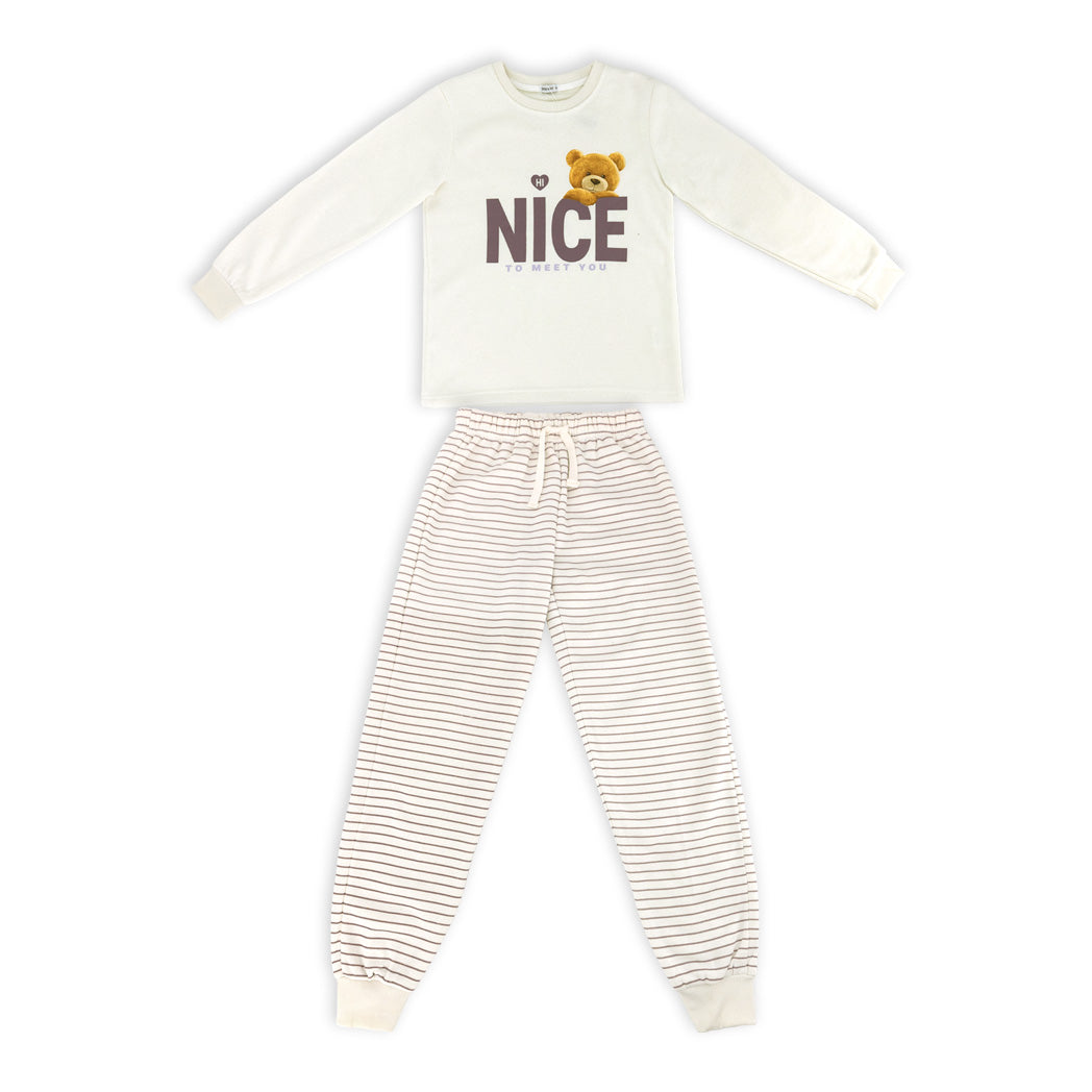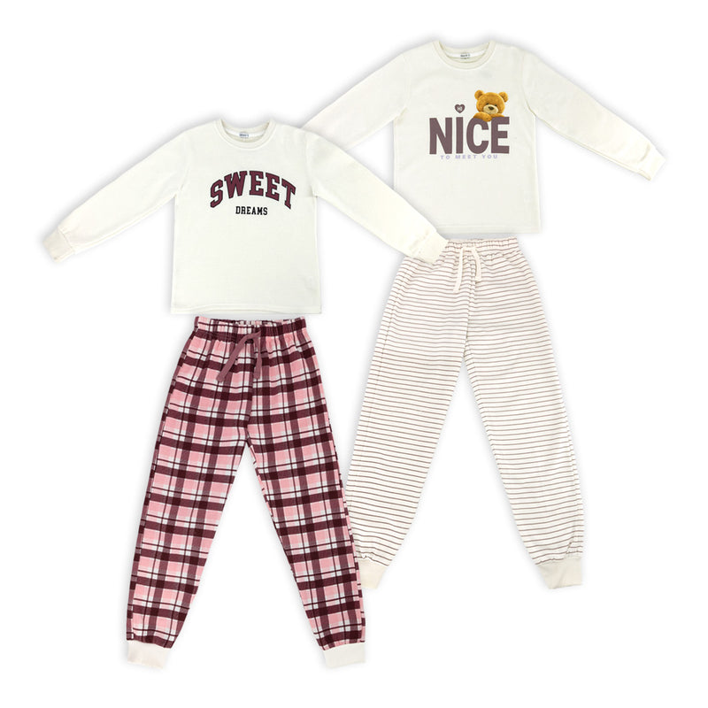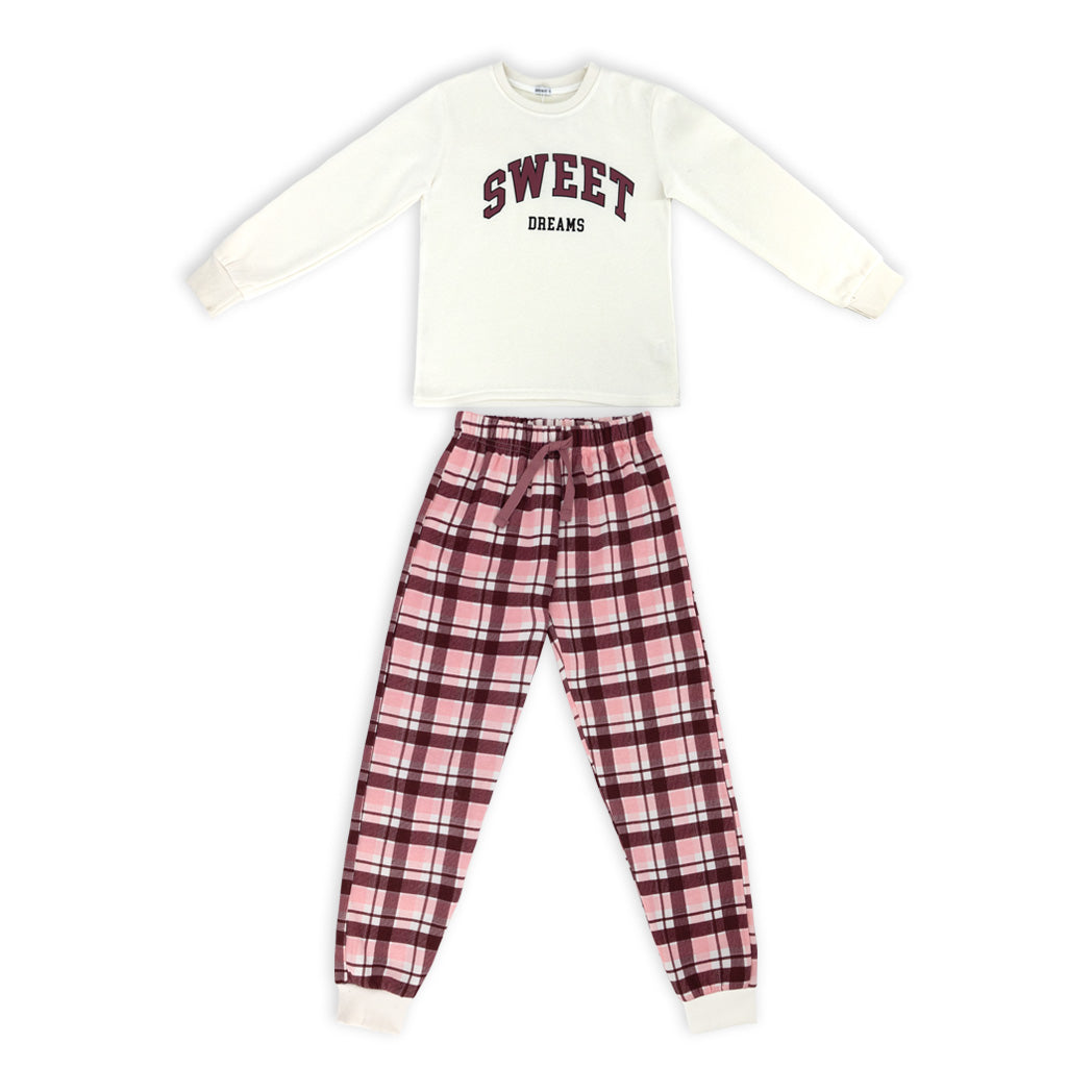 פיג'מת פוטר עבה לבנות ונערות בגווני קרם וורוד