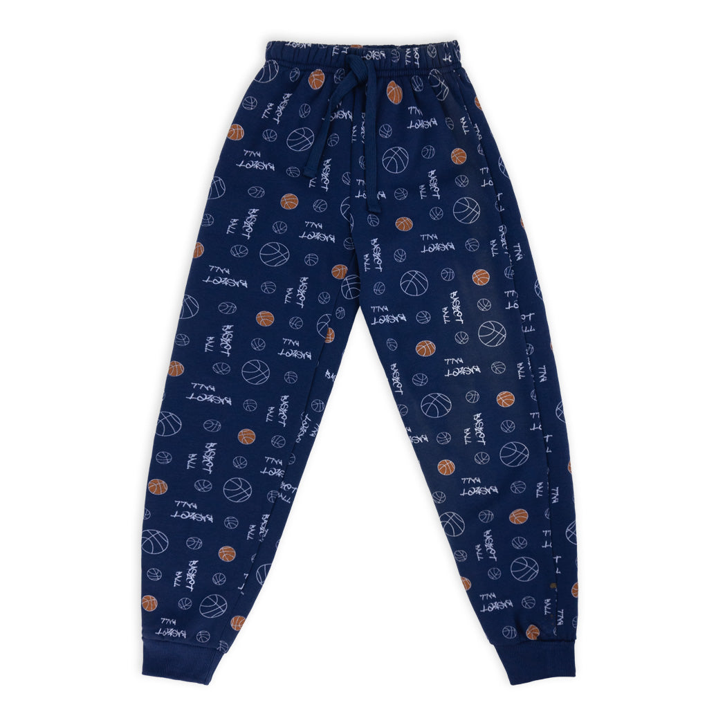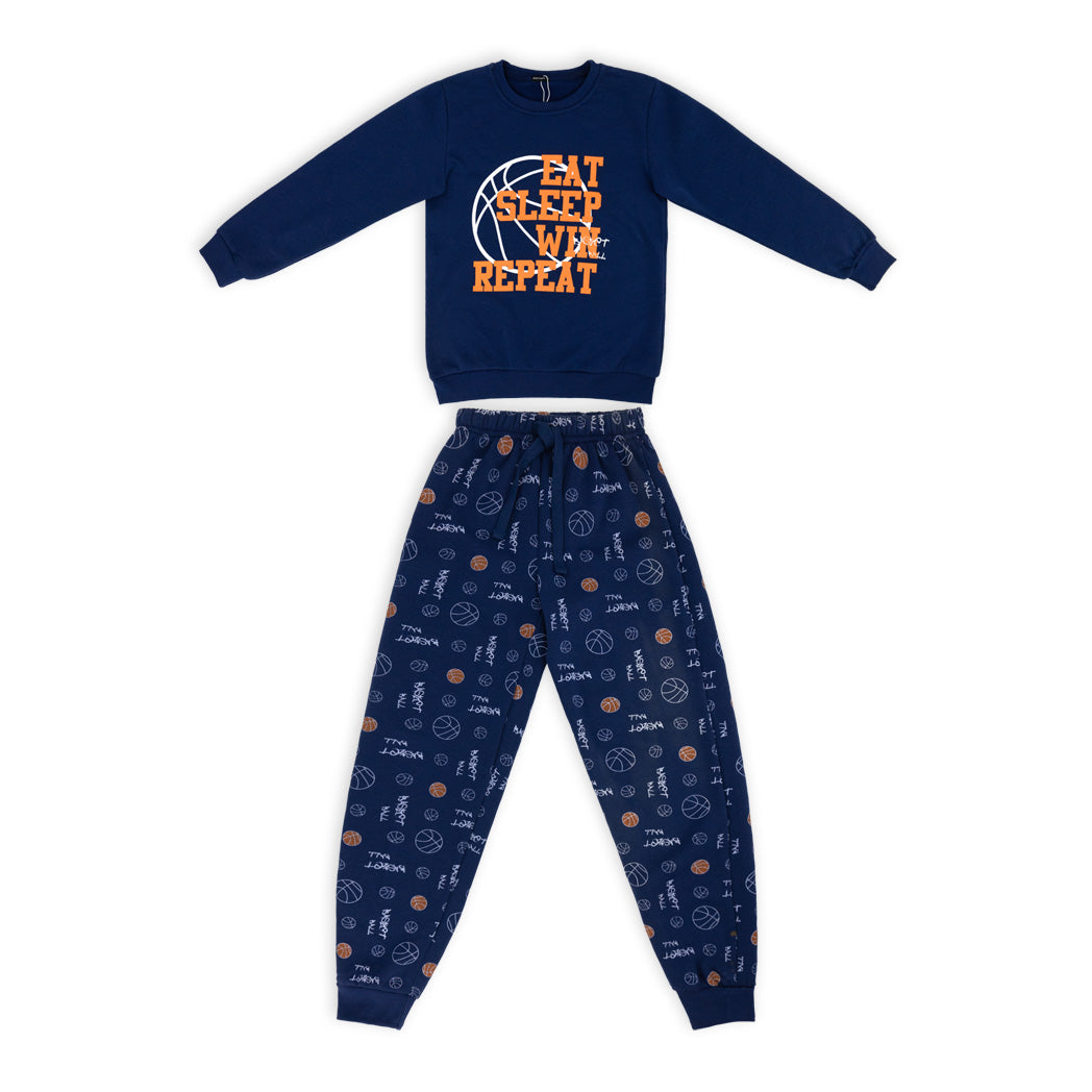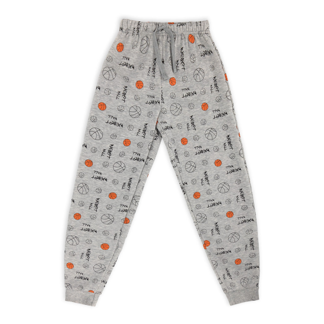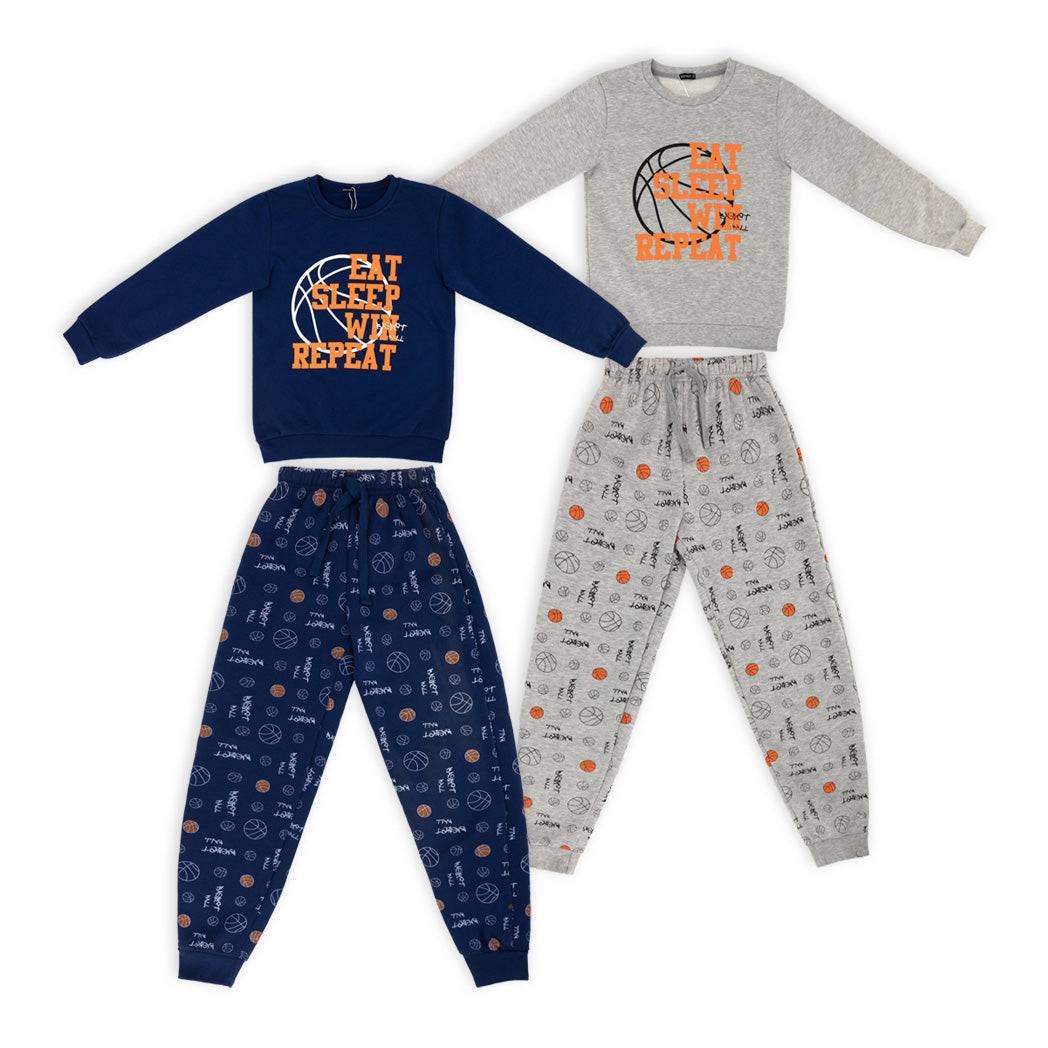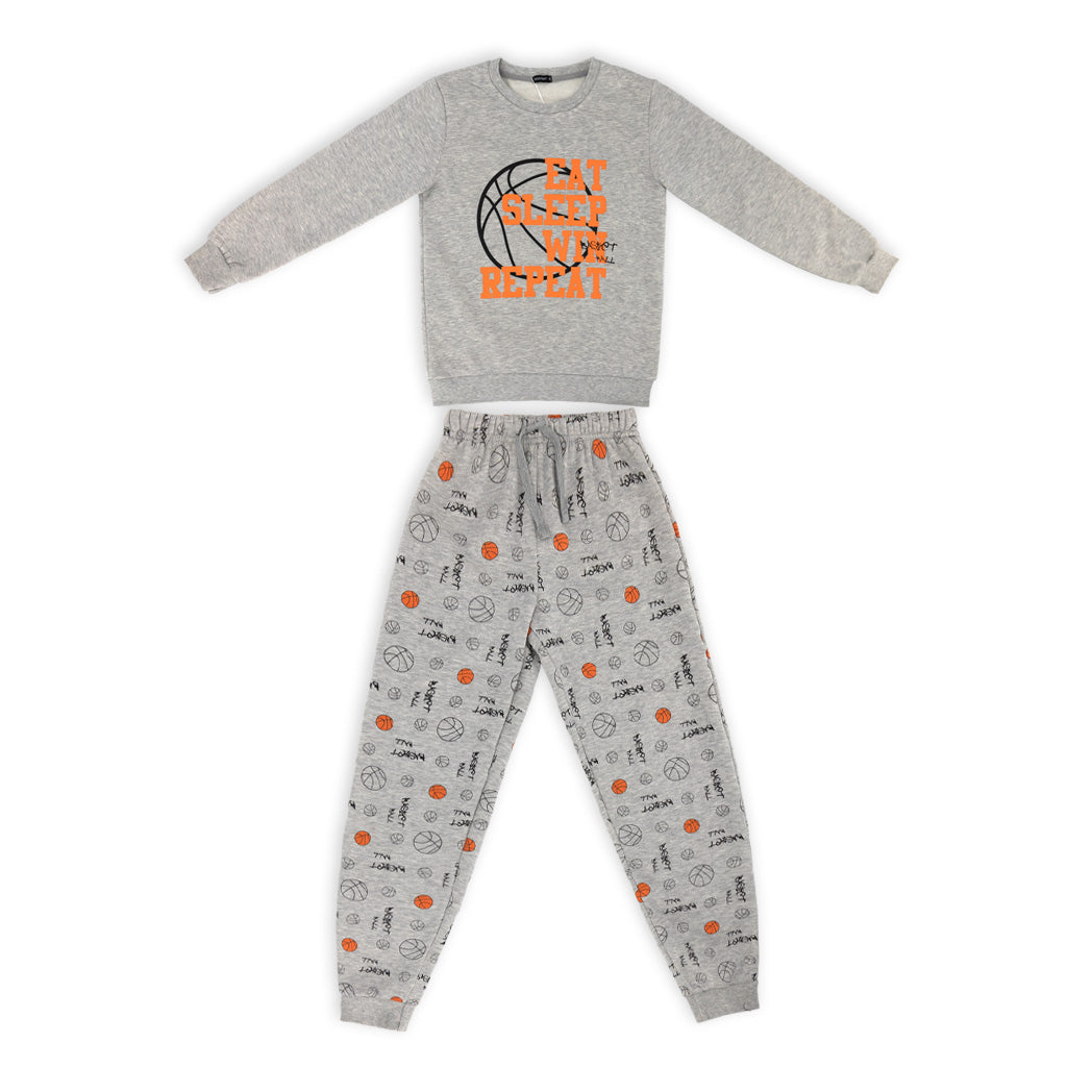 זוג פיג'מות פוטר עבה לבנים ונוער עם הדפס כדורסל בשני גוונים