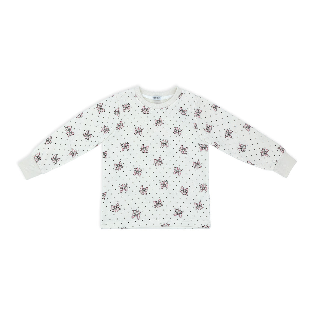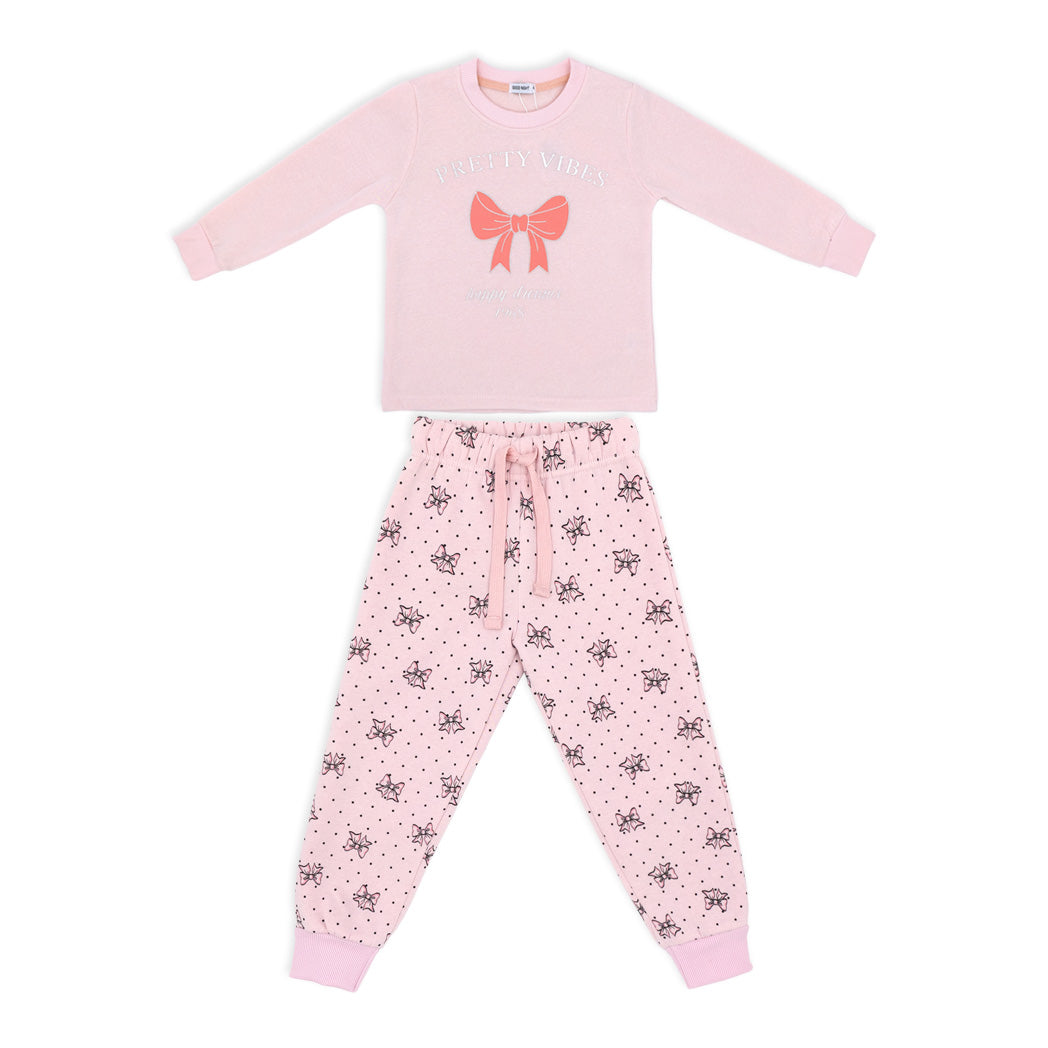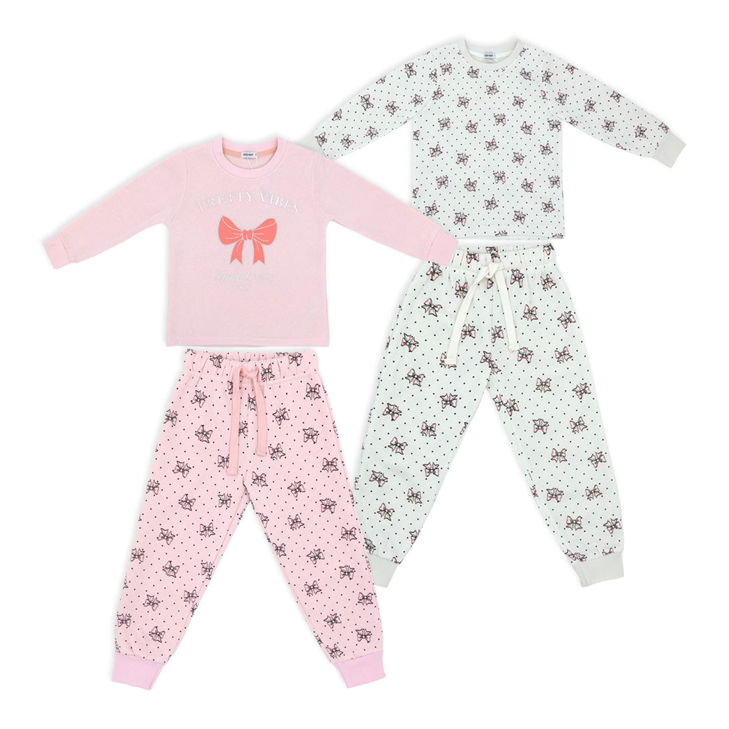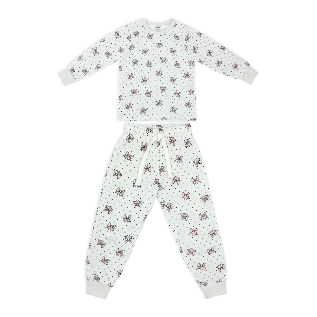 פיג'מת פוטר עבה לילדות בגווני ורוד ולבן-קרם עם הדפסי פפיונים