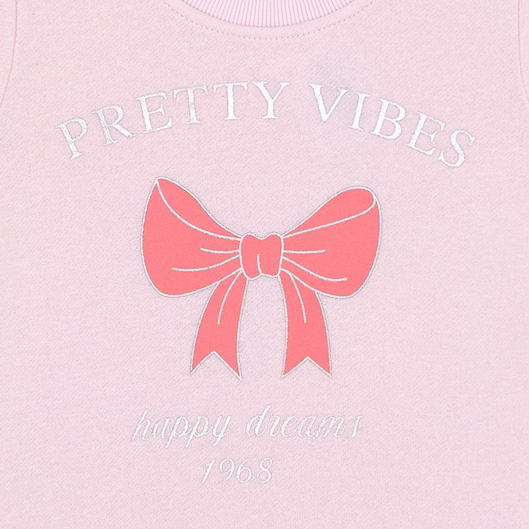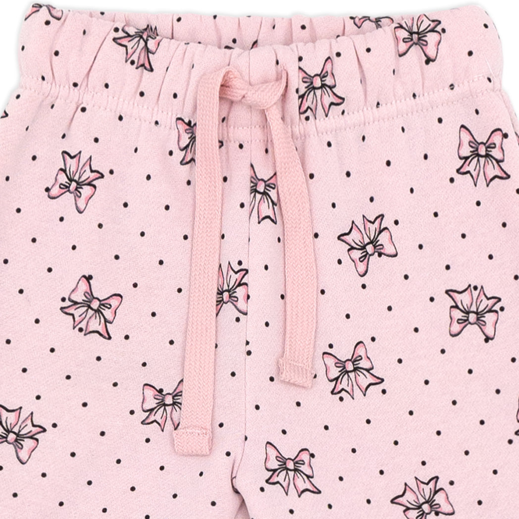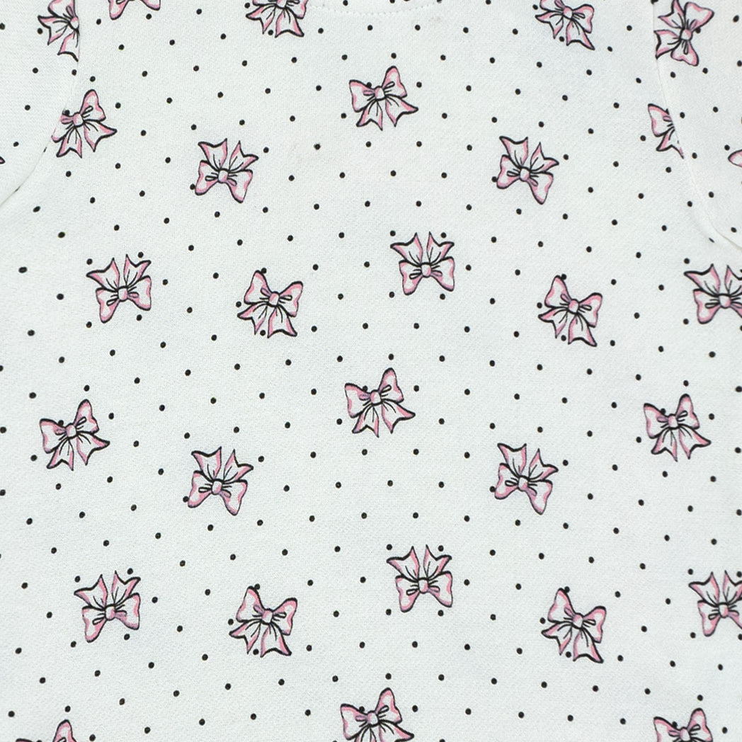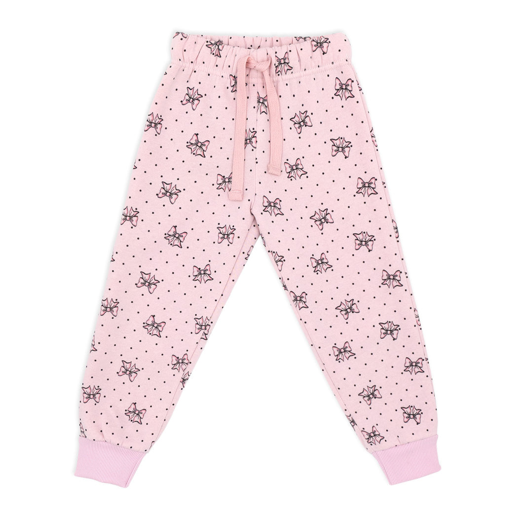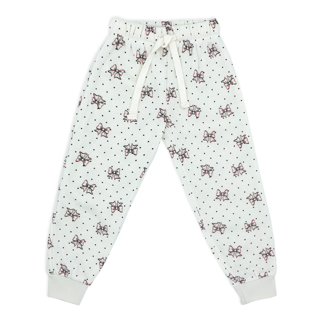 פיג'מת פוטר עבה לילדות בגווני ורוד ולבן-קרם עם הדפסי פפיונים