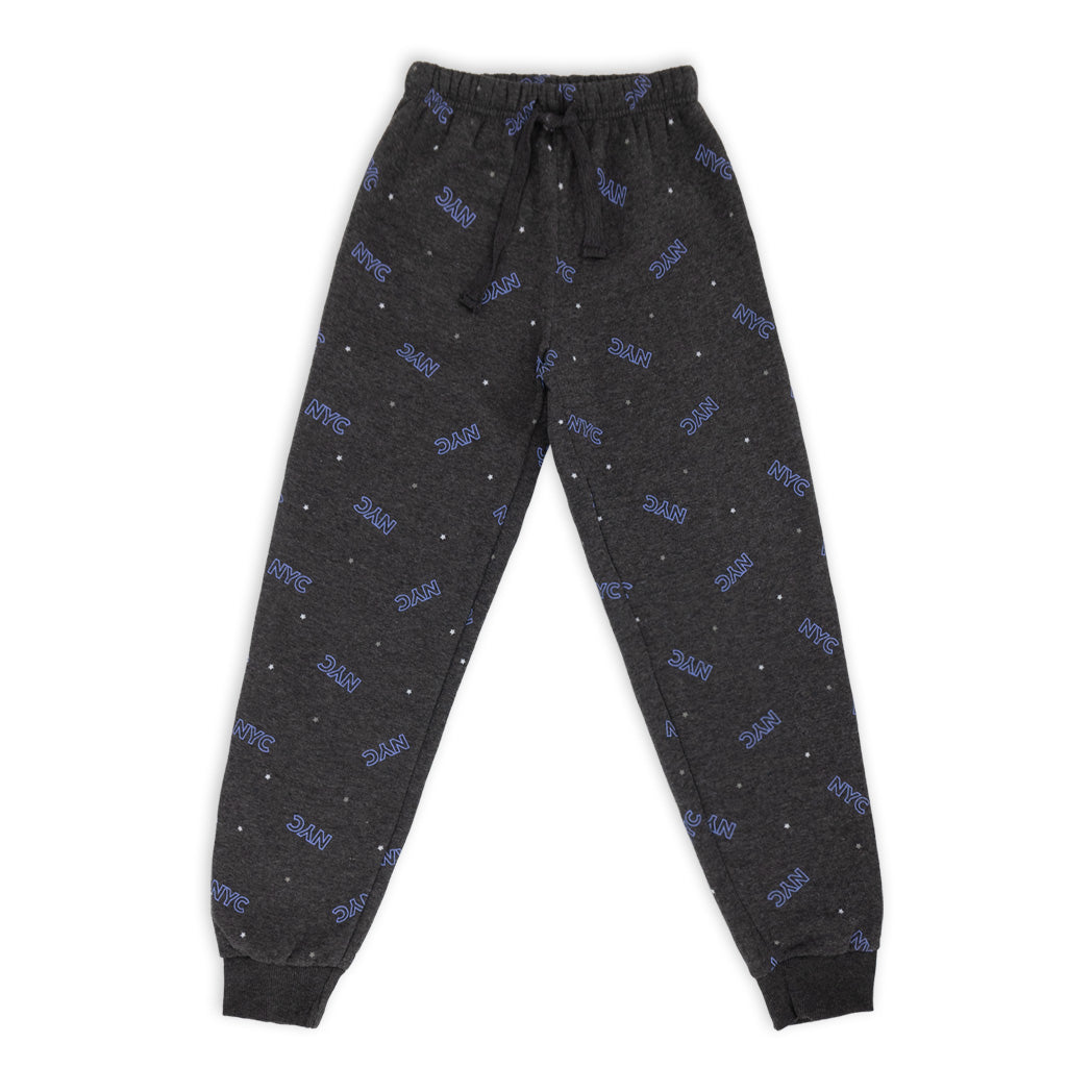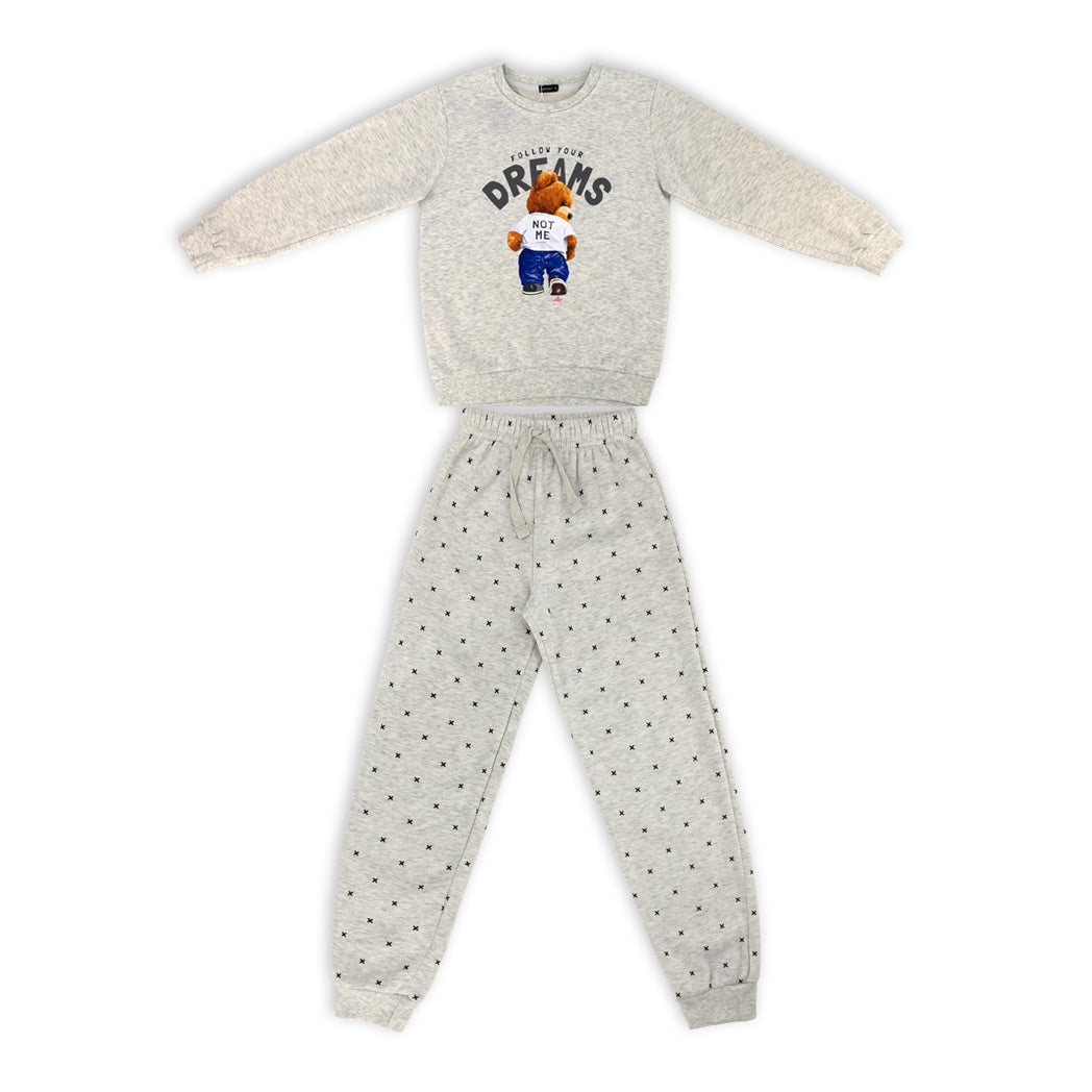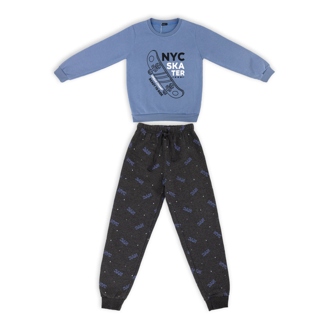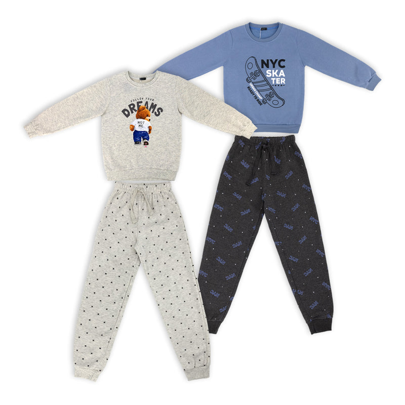 זוג פיג'מות פוטר עבה לבנים ונוער עם הדפסי סקייטבורד ודובי