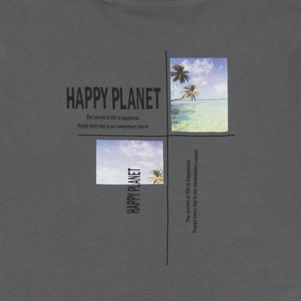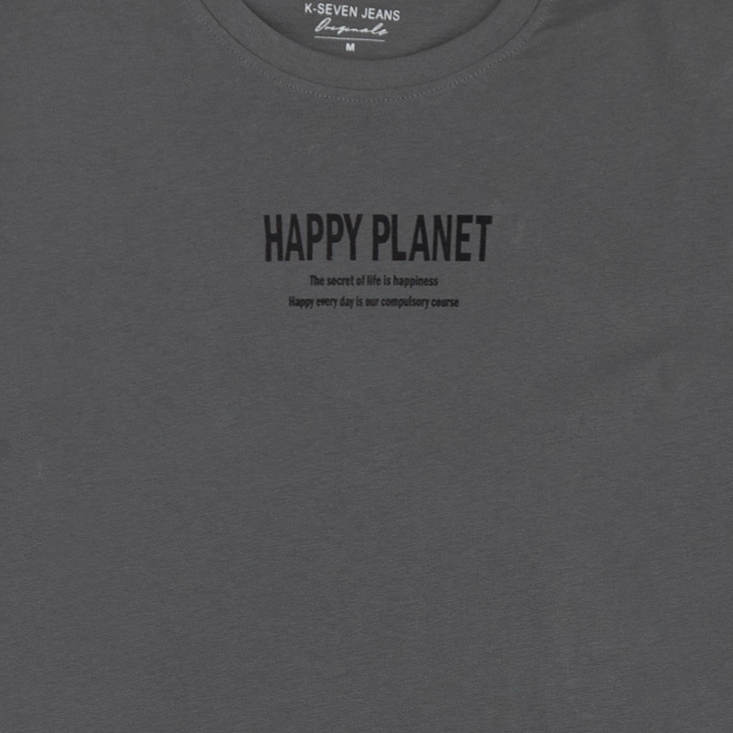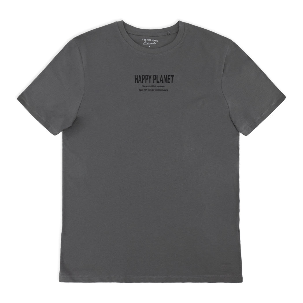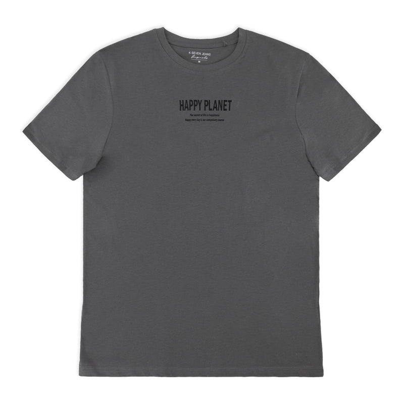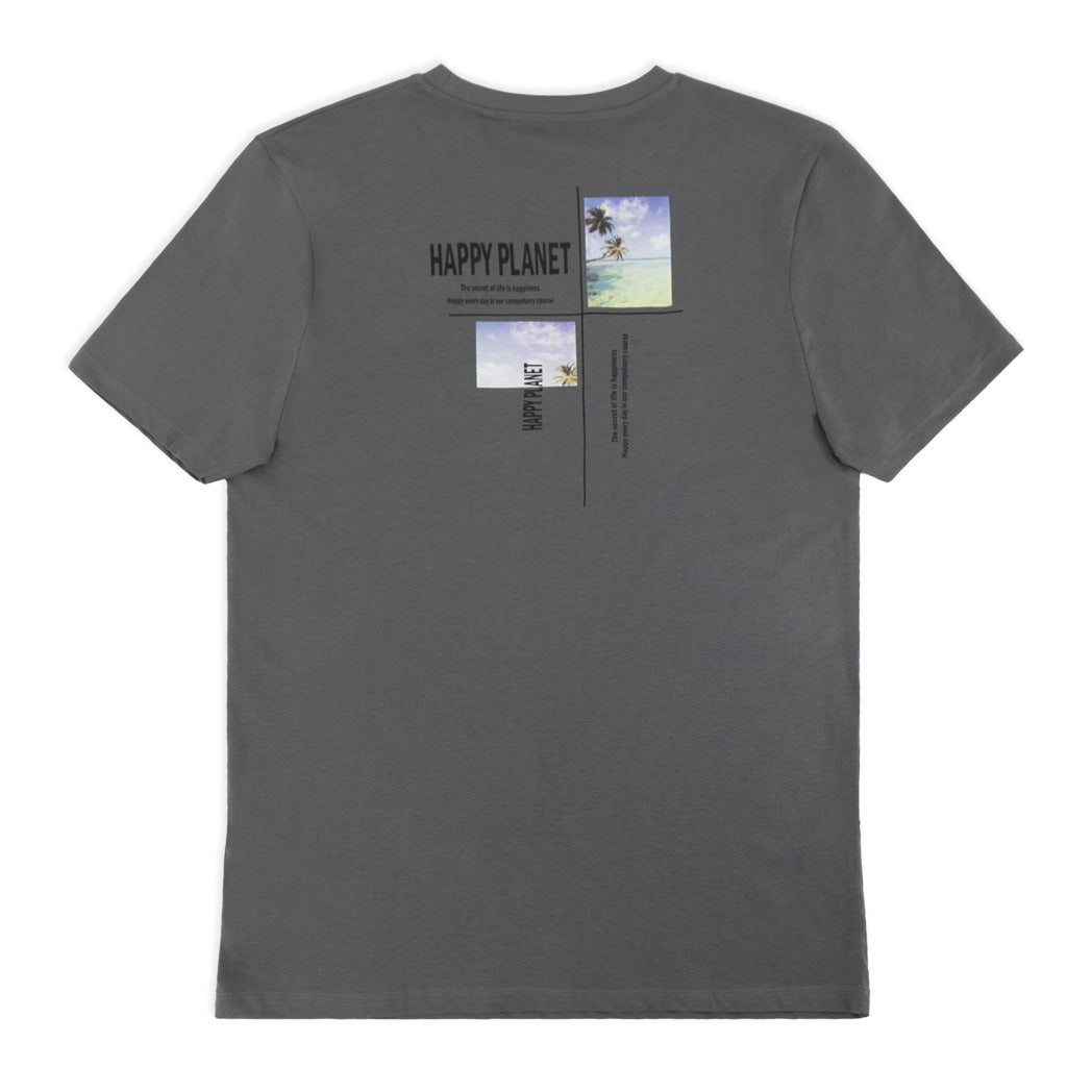 חולצת גברים אפורה עם הדפס מלפנים ומאחור