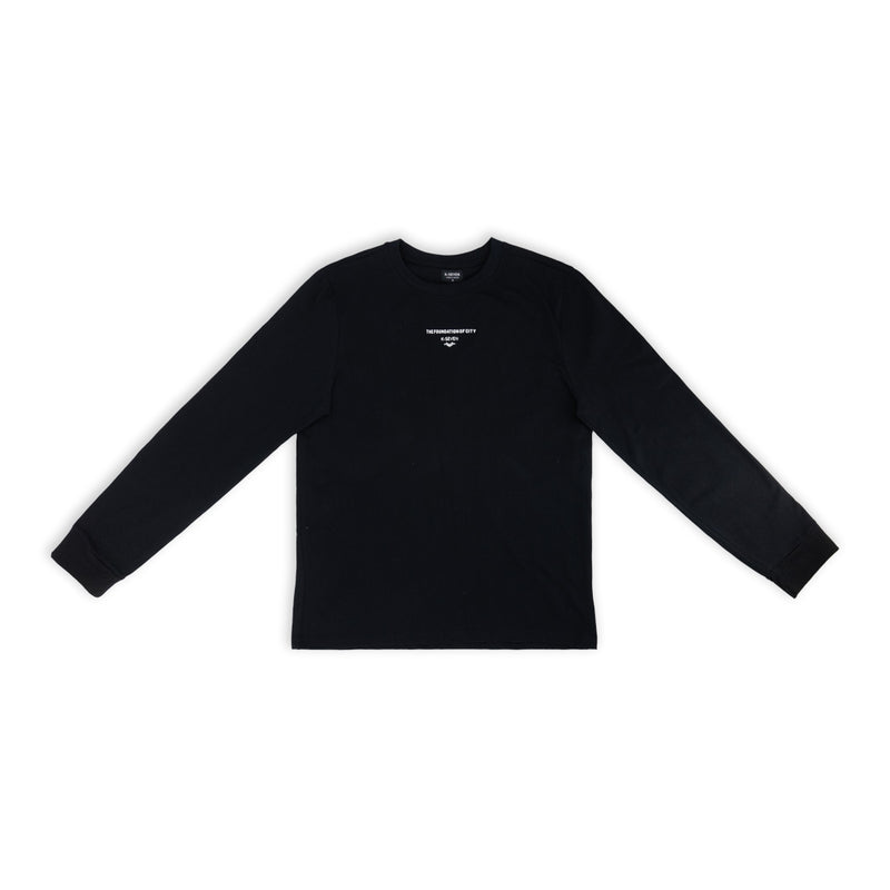 חולצת גבר שחורה עם שרוולי ריב והדפס מובלט מלפנים ומאחור
