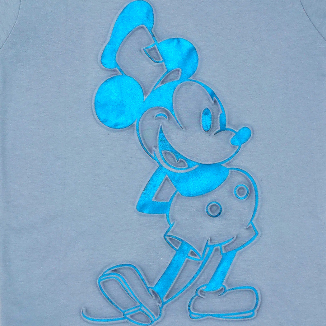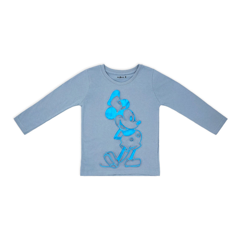 חולצת ילדים בצבע תכלת עם הדפס בד מיקי מאוס מובלט ובוהק