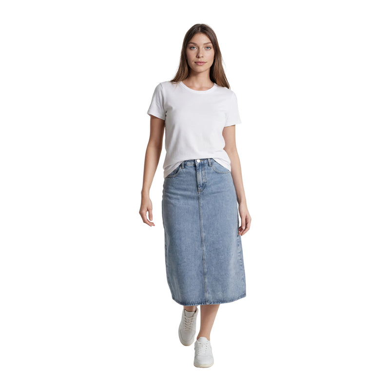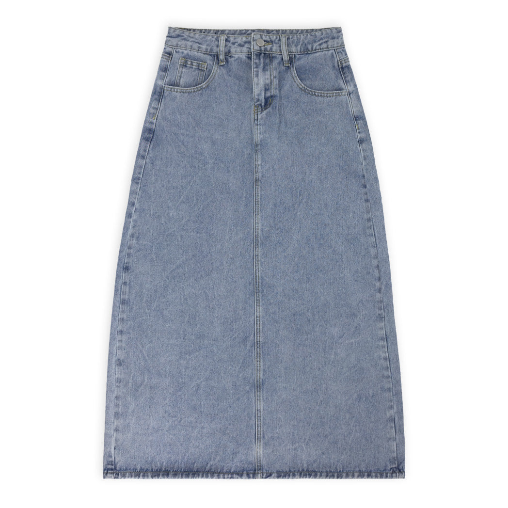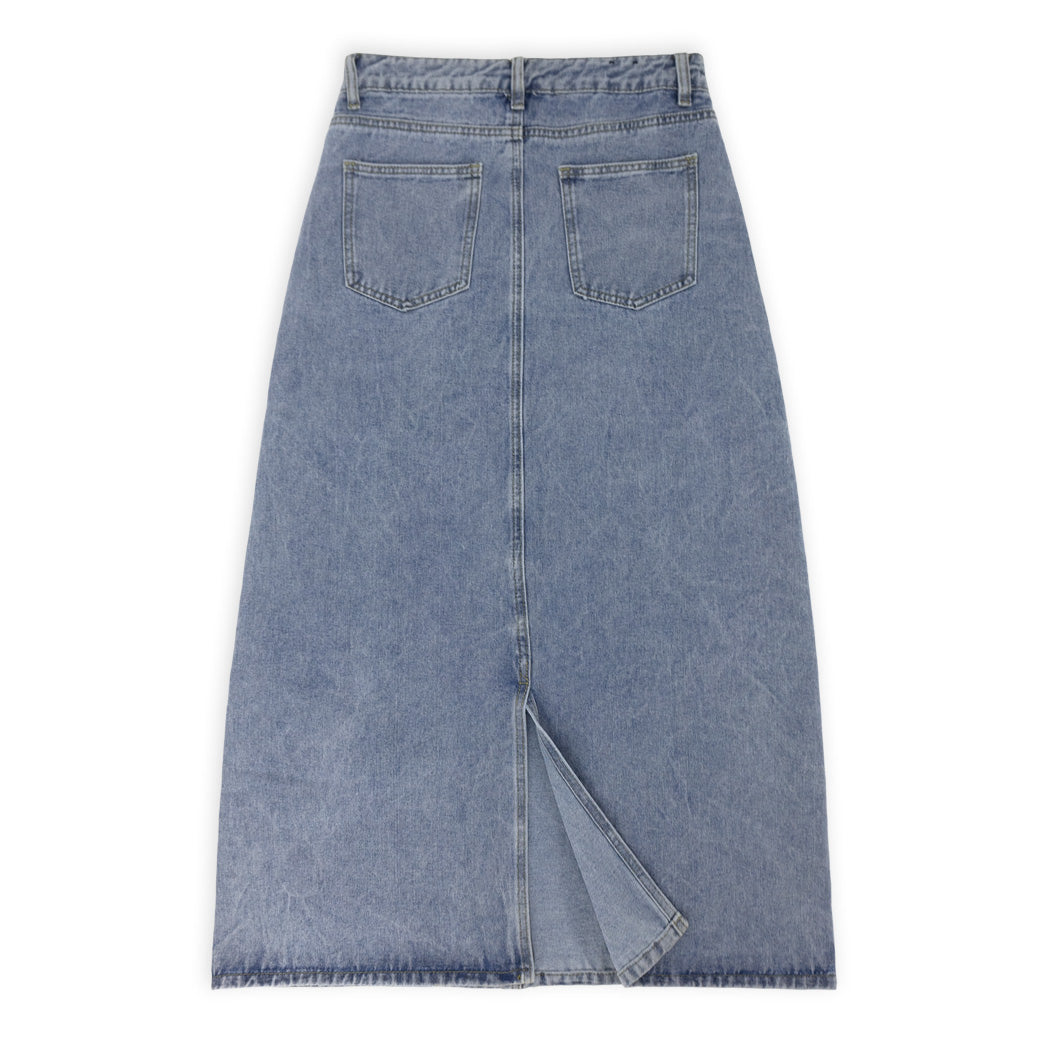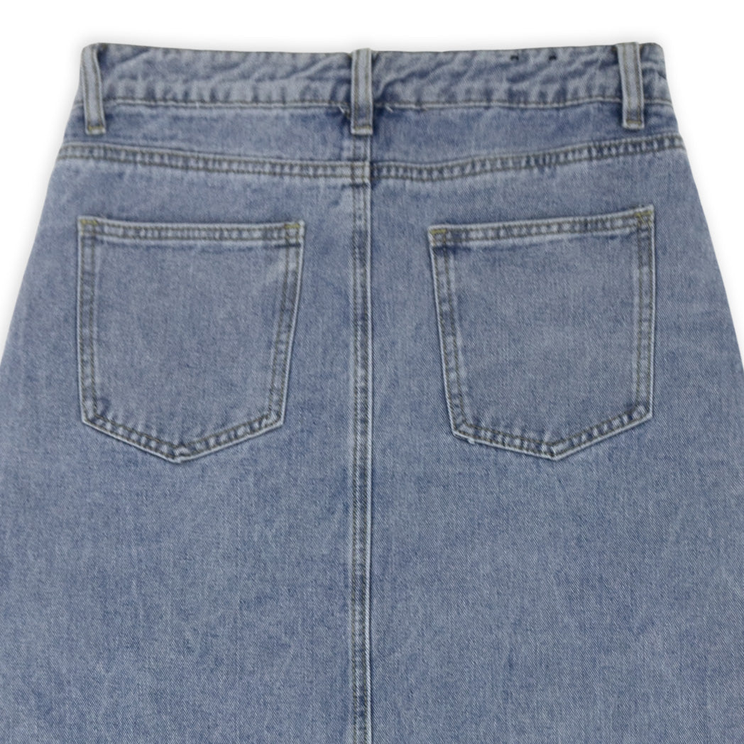 חצאית ג'ינס מעוצבת לנשים עם שסע מאחור
