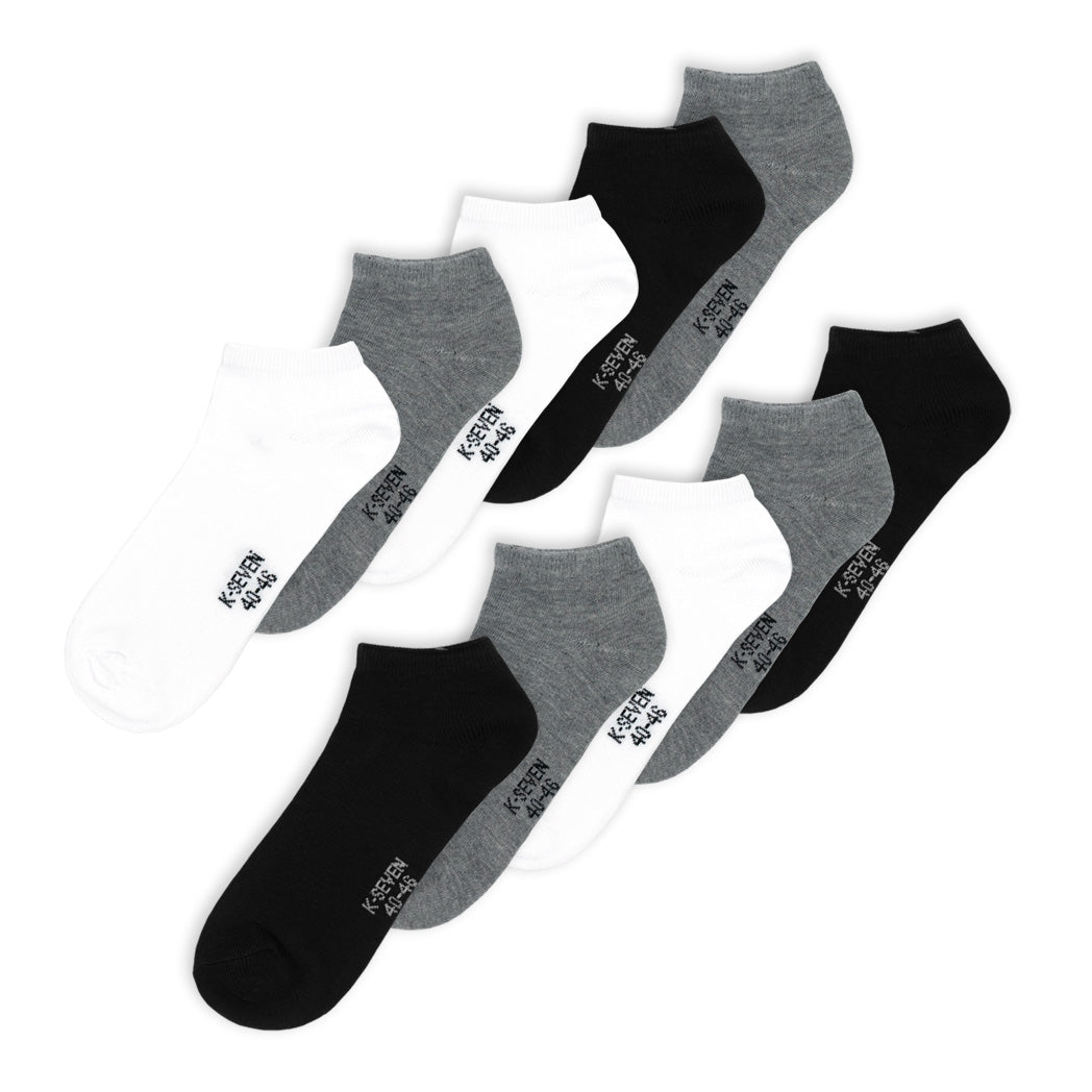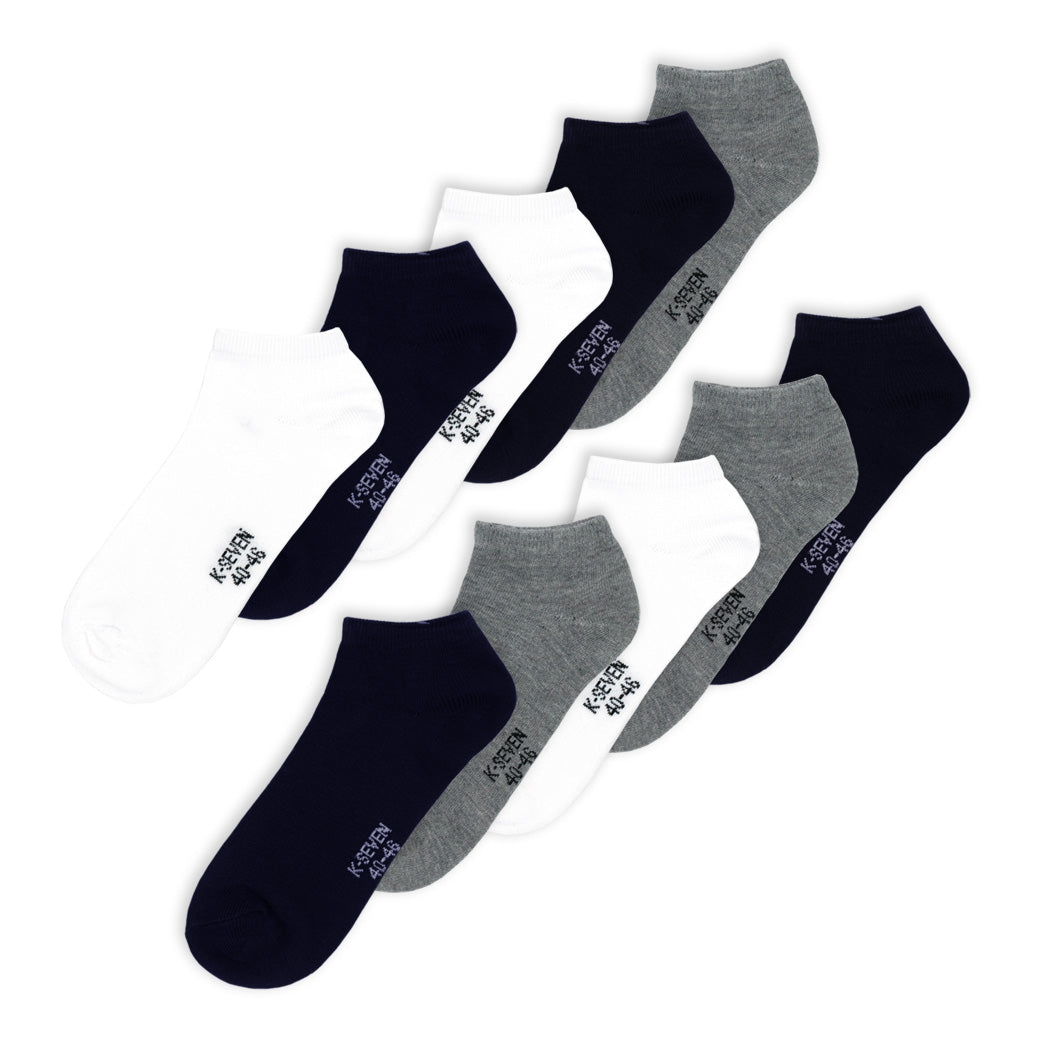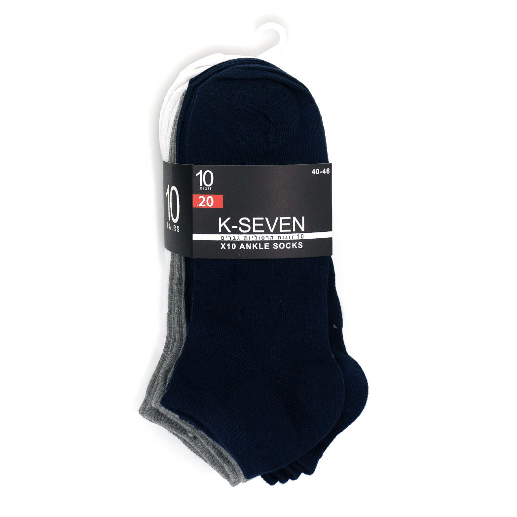 עשיריית זוגות גרביים נמוכות לגברים - שחורות, כחולות, לבנות ואפורות